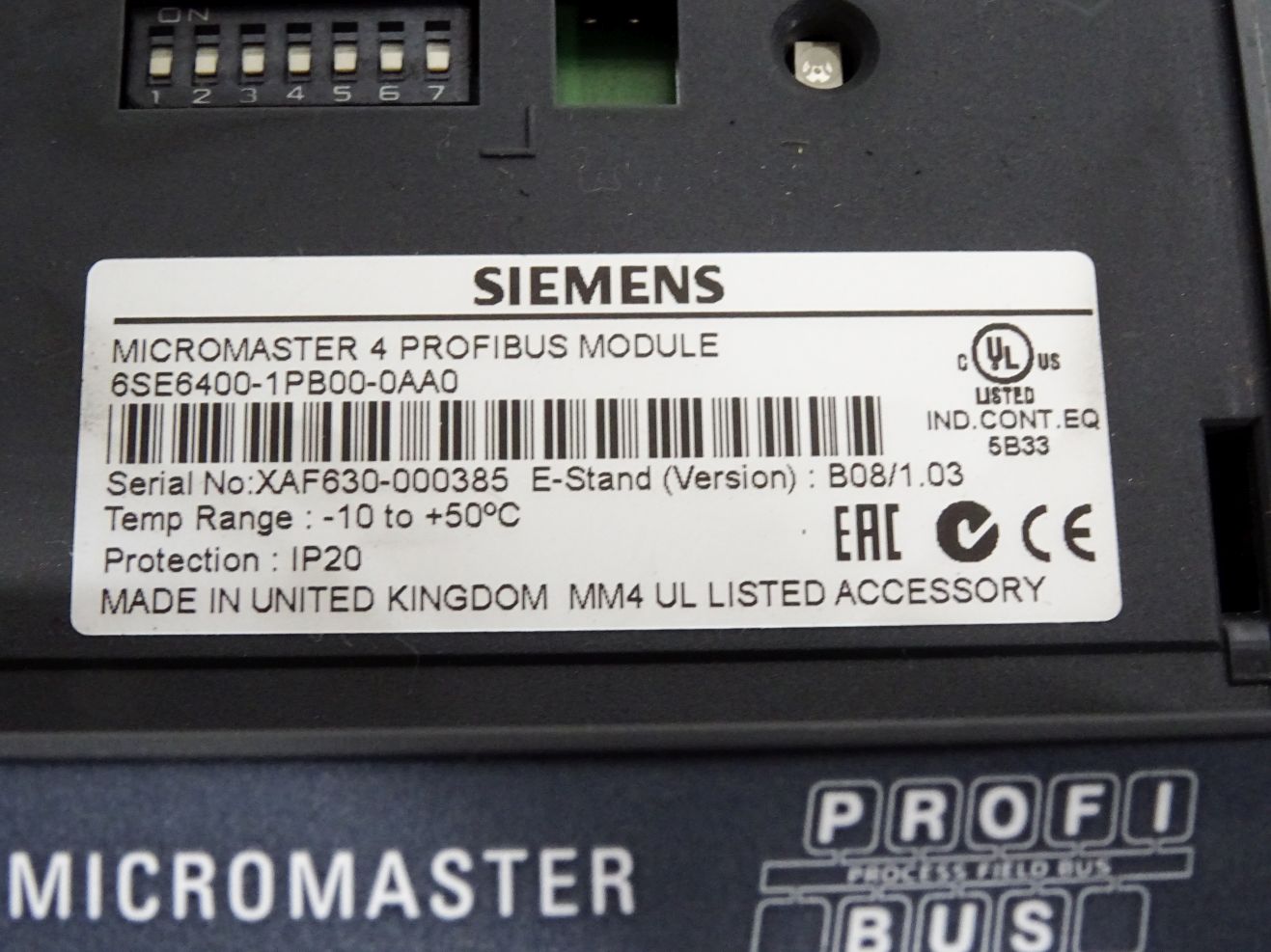 Siemens Micromaster 420 6SE6420-2AD25-5CA1 5.5kW + Profibus 6SE6400-1PB00-0AA0