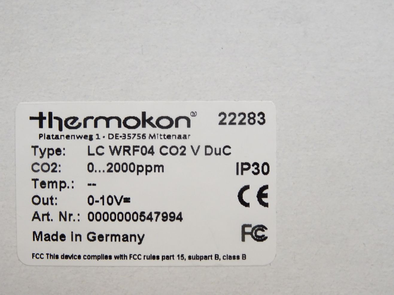 Thermokon Raumfühler LC WRF04 CO2 V DuC 22283 / Neu OVP