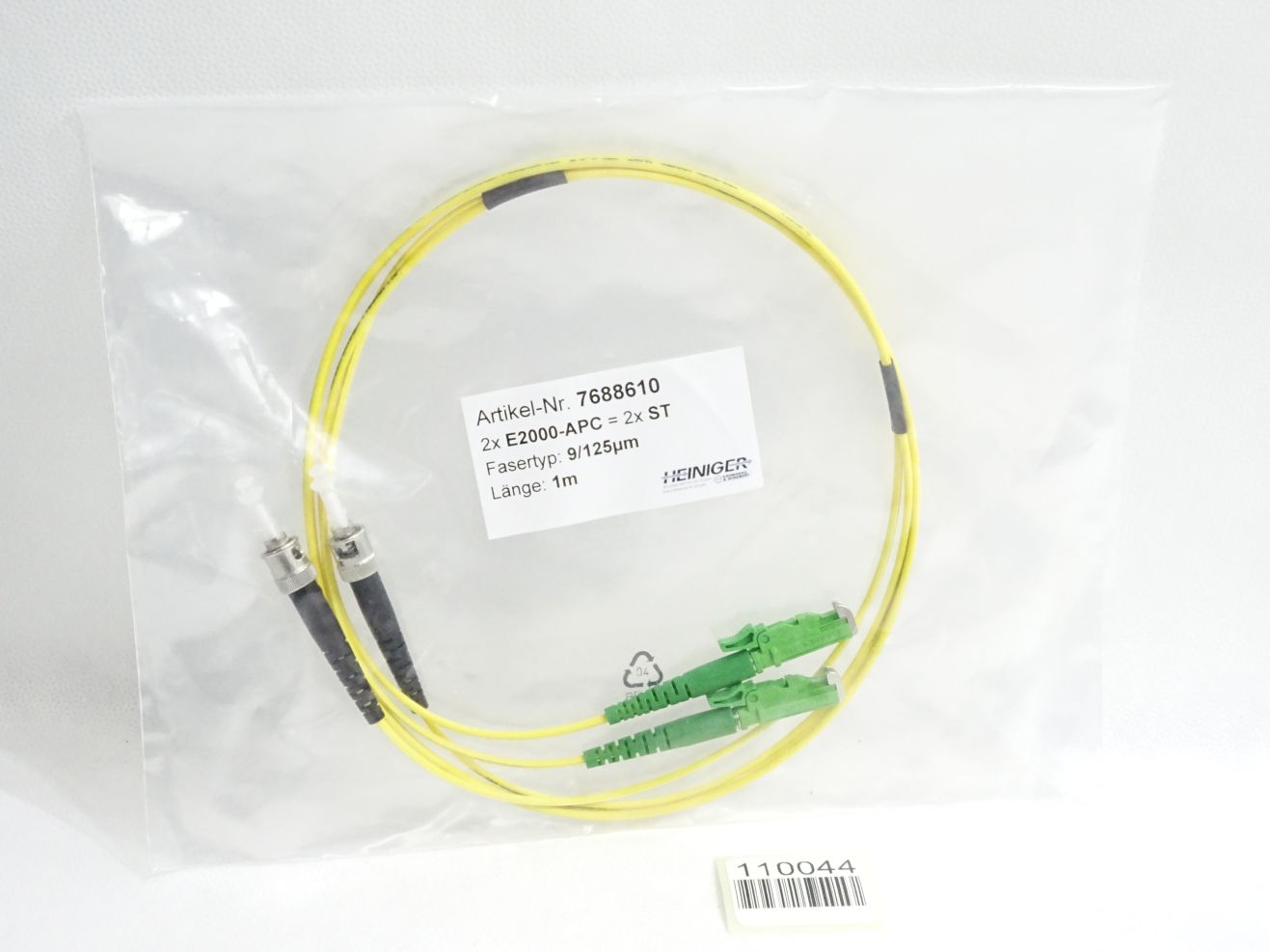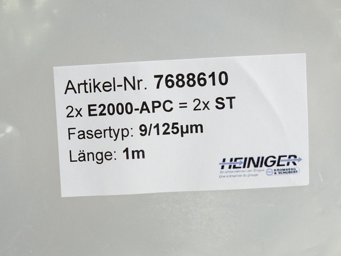 Heiniger 7688610 Glasfaser-Patchkabel E2000 APC - ST 9/125 duplex 1m / Neu OVP