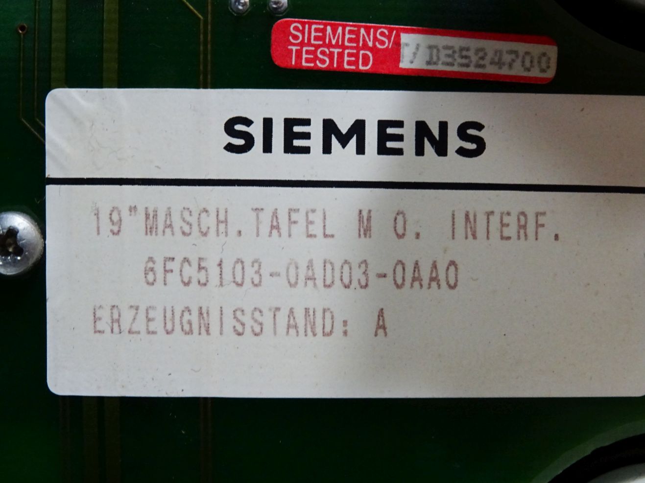 Siemens Sinumerik 840C Maschinensteuertafel 6FC5103-0AD03-0AA0 version A