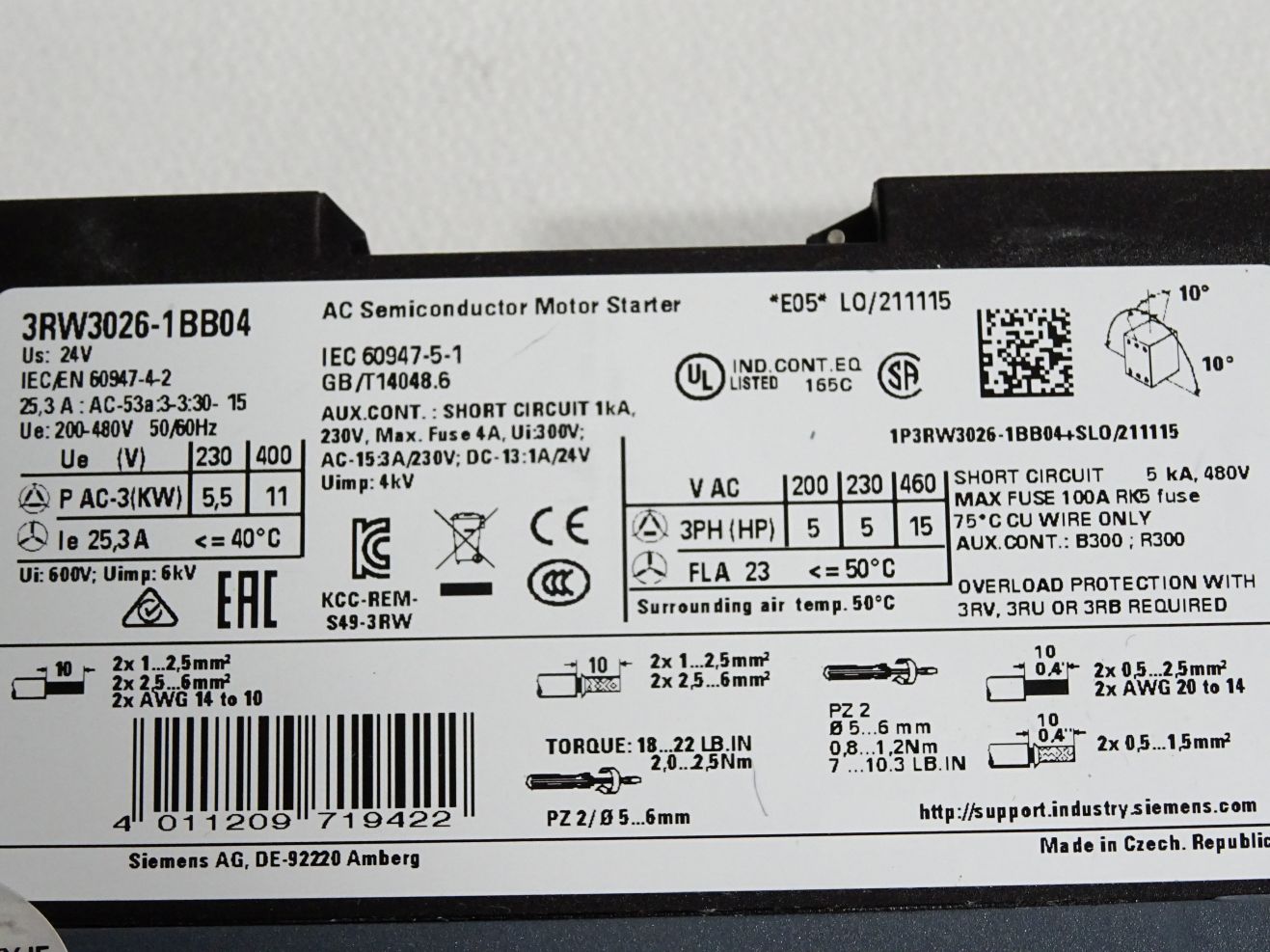 Siemens SIRIUS Sanftstarter 3RW3026-1BB04