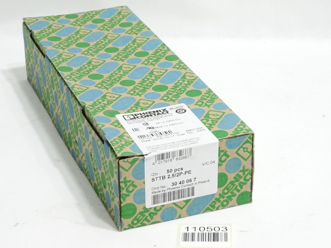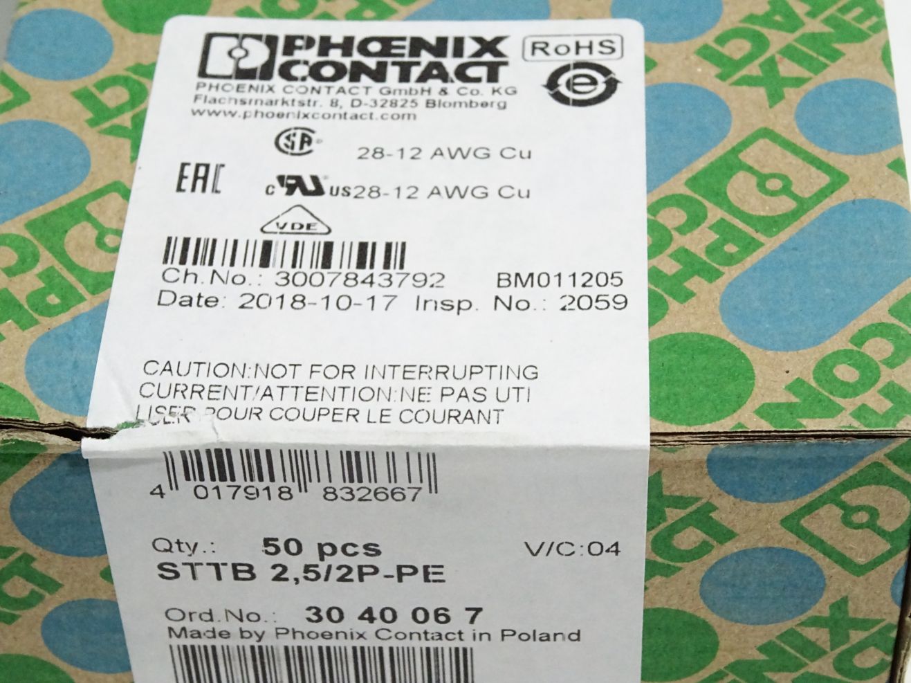 Phoenix Contact 3040067 Inhalt:50 Stück STTB 2,5/2P-PE / Neu OVP versiegelt