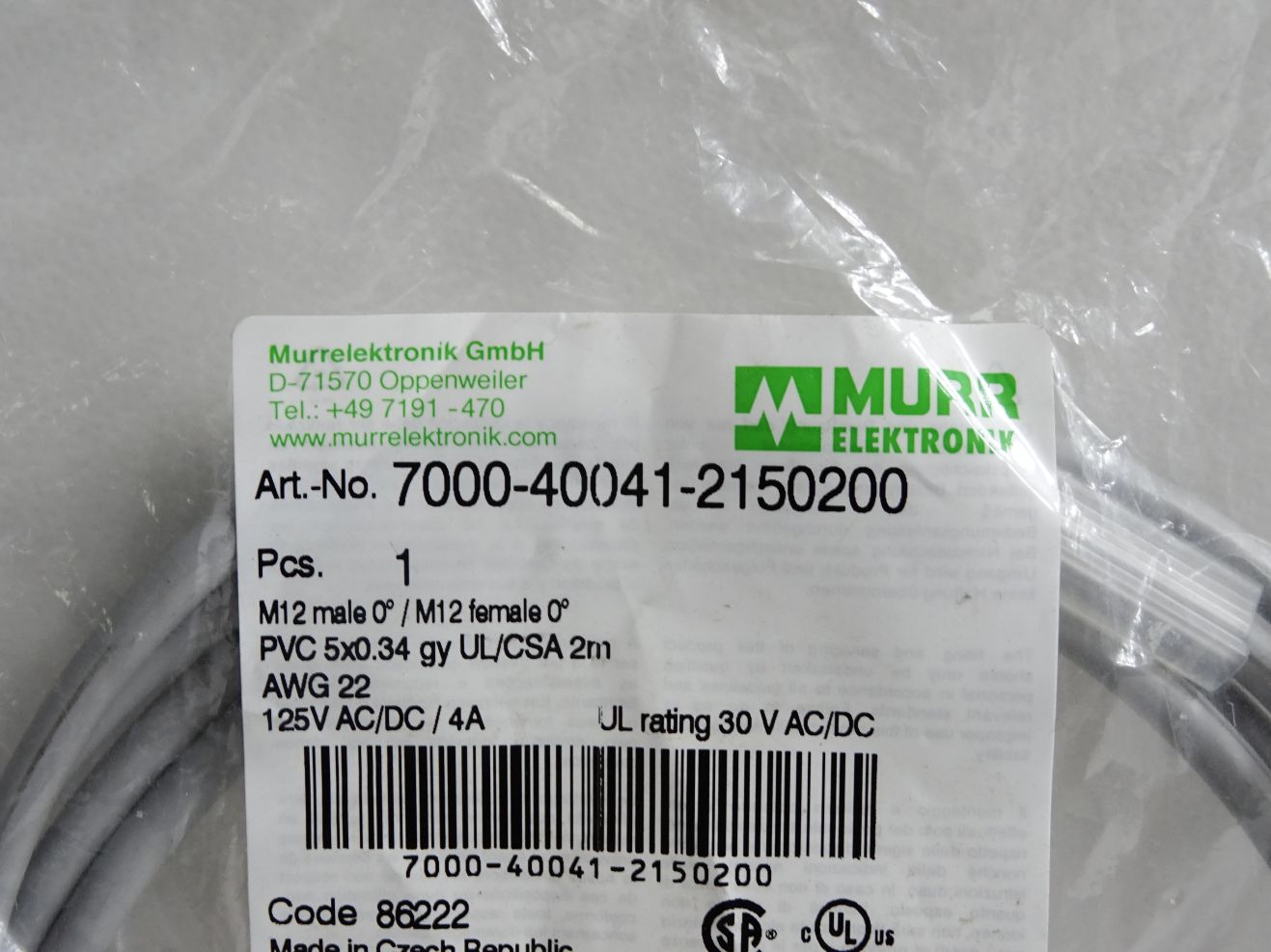 Murr Elektronik Kabel 7000-40041-2150200 / Neu OVP