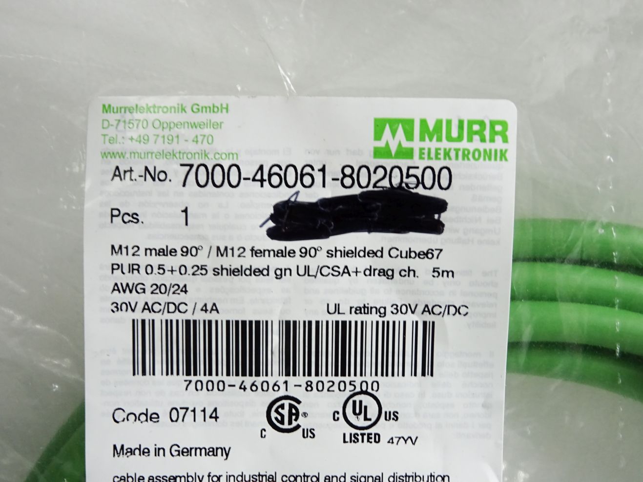 Murr Elektronik Kabel 7000-46061-8020500 / Neu OVP