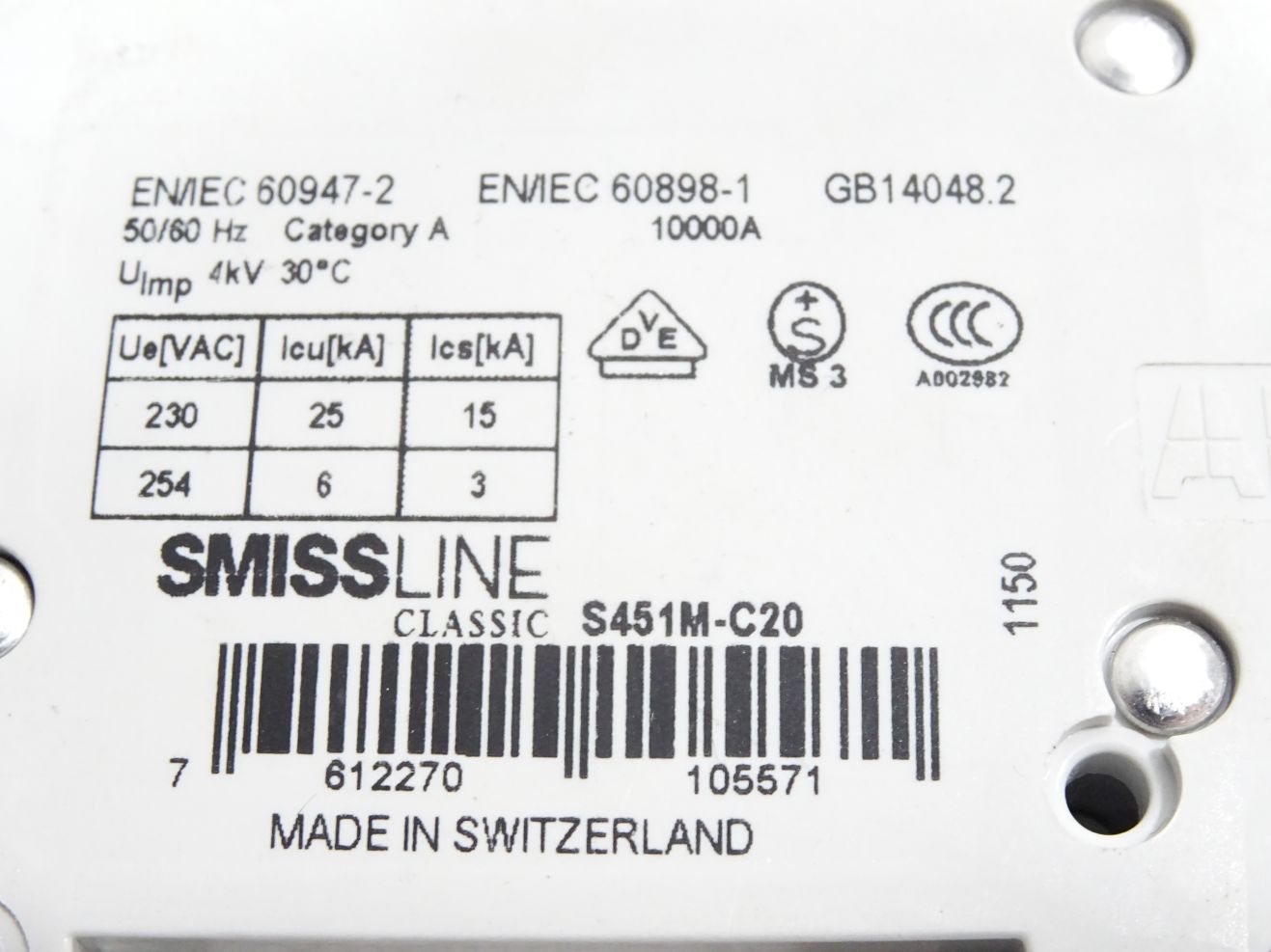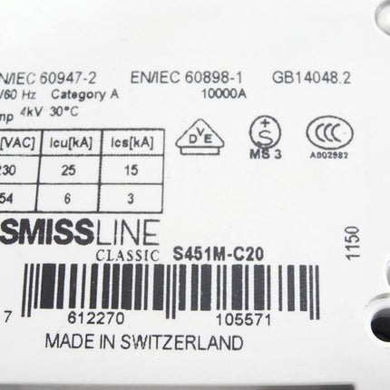 ABB Smissline S451M-C20 Leitungsschutzschalter S451 M C20
