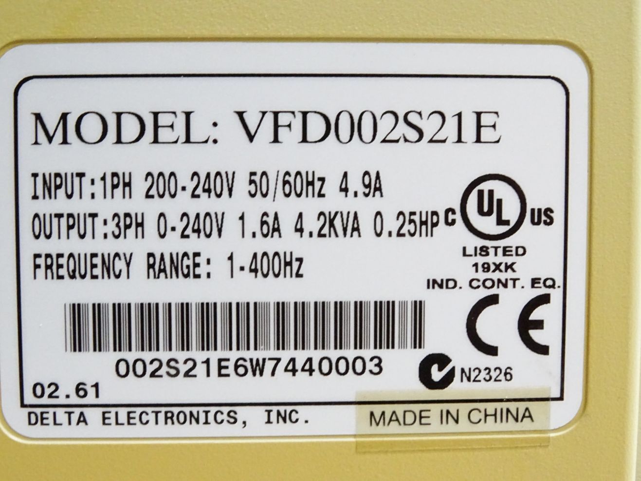 Delta S1 Frequenzumrichter VFD002S21E 0.1875 KW