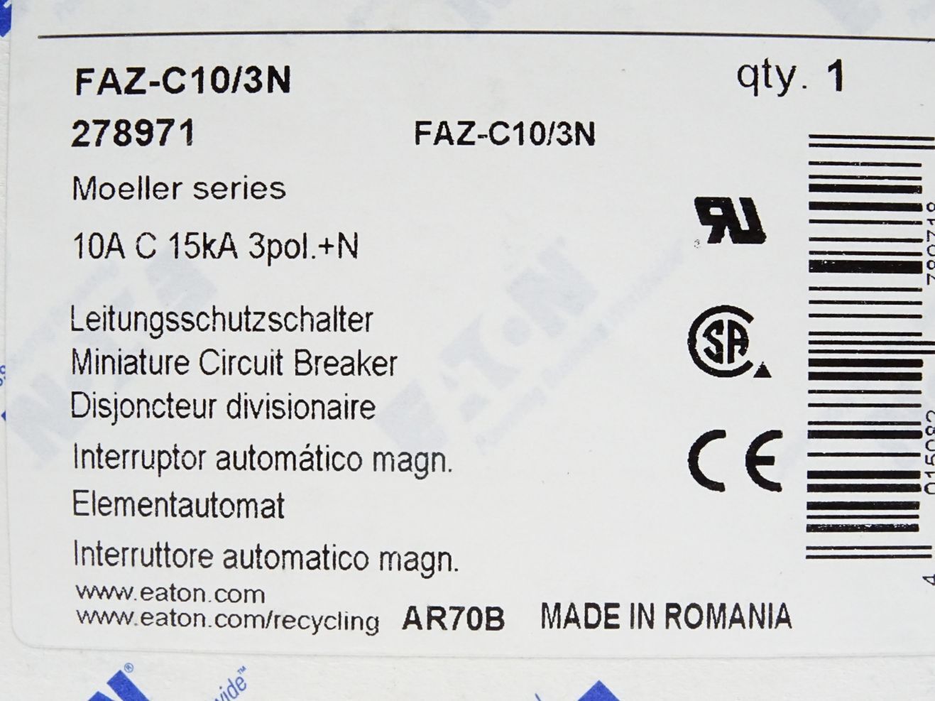 Eaton Leitungsschutzschalter FAZ-C10/3N 278971 / Neu OVP