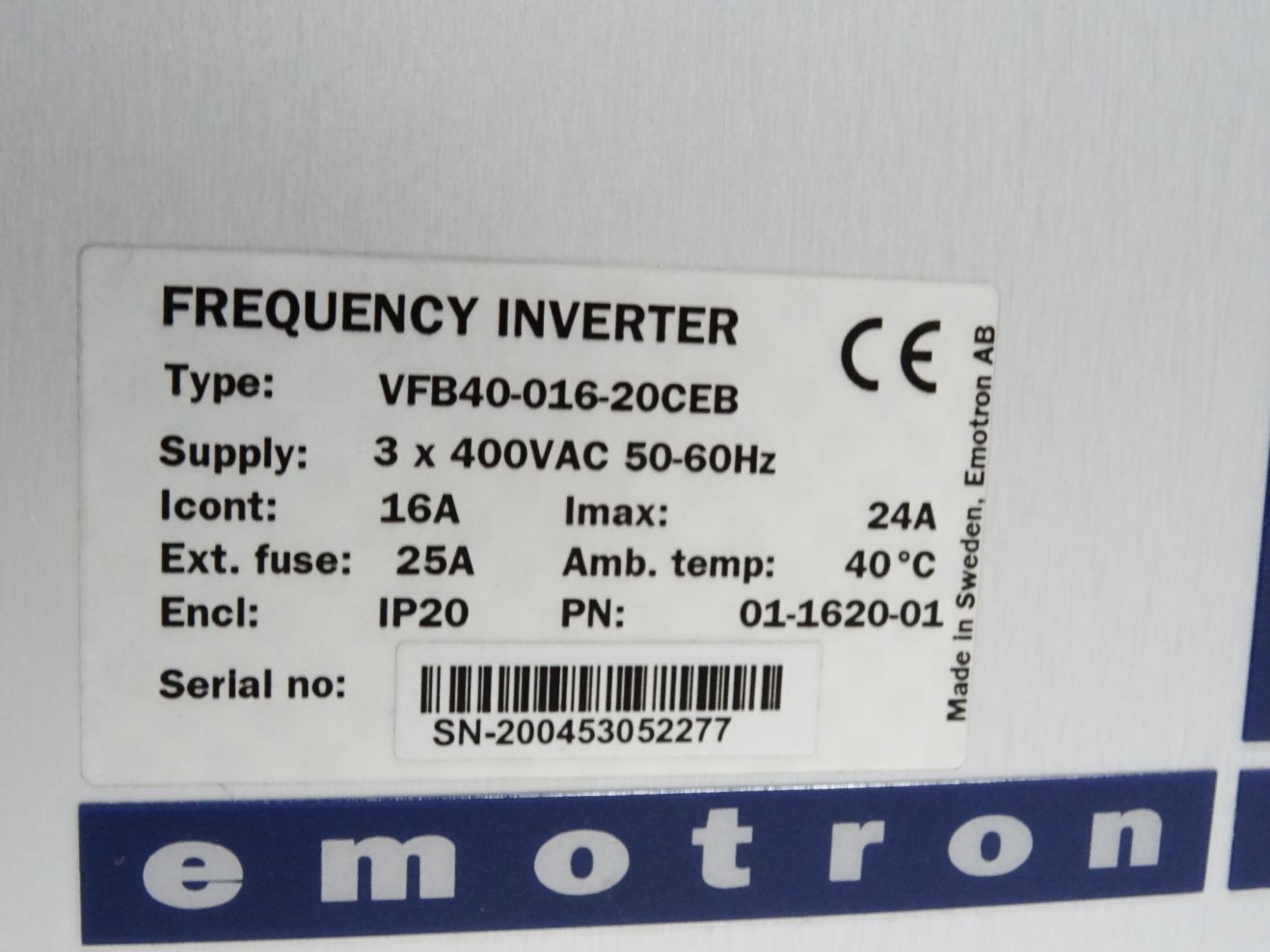 Emotron Frequenzumrichter 7.5kW VFB40-016-20CEB 01-1620-01 / Neuwertig OVP
