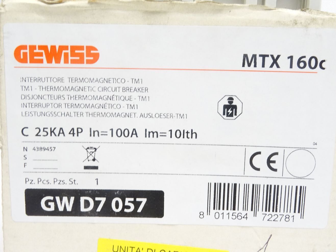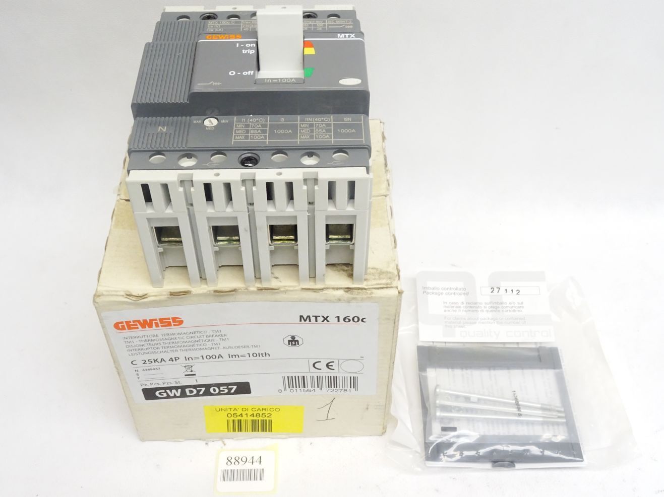 Gewiss Leistungsschalter Thermomagnetische Ausloeser MTX160C 100A / GWD7057 / Neu OVP
