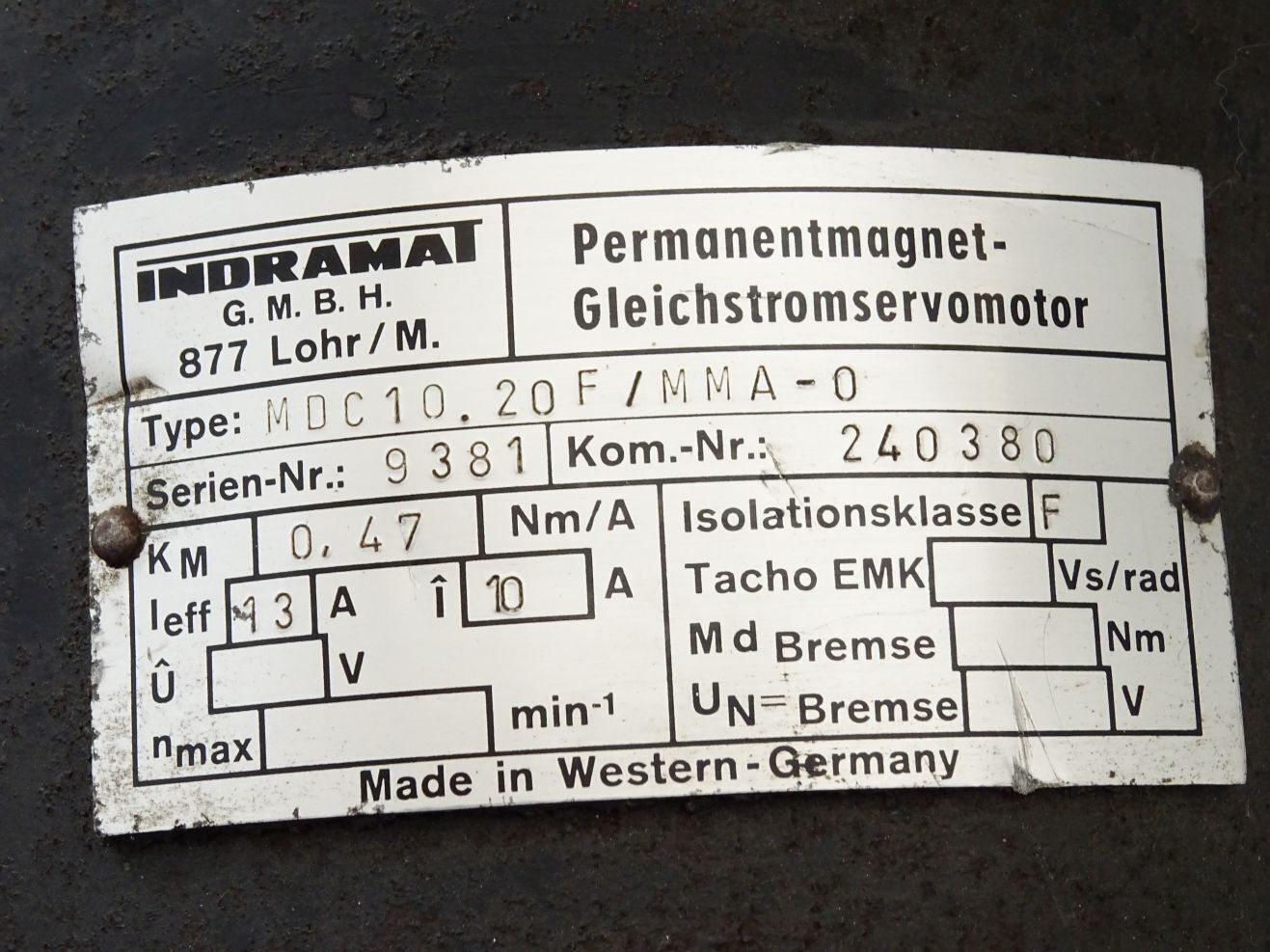 Indramat Permanentmagnet-Gleichstromservomotor Servomotor MDC10.20F/MMA-0
