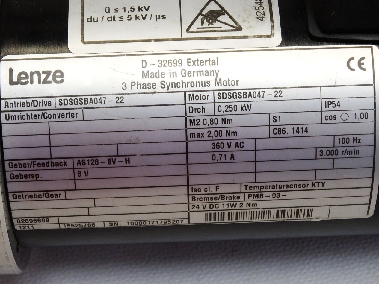 Lenze Servomotor SDSGSBA047-22 0,250kW 3000r/min + Getriebe LP050-M01-5
