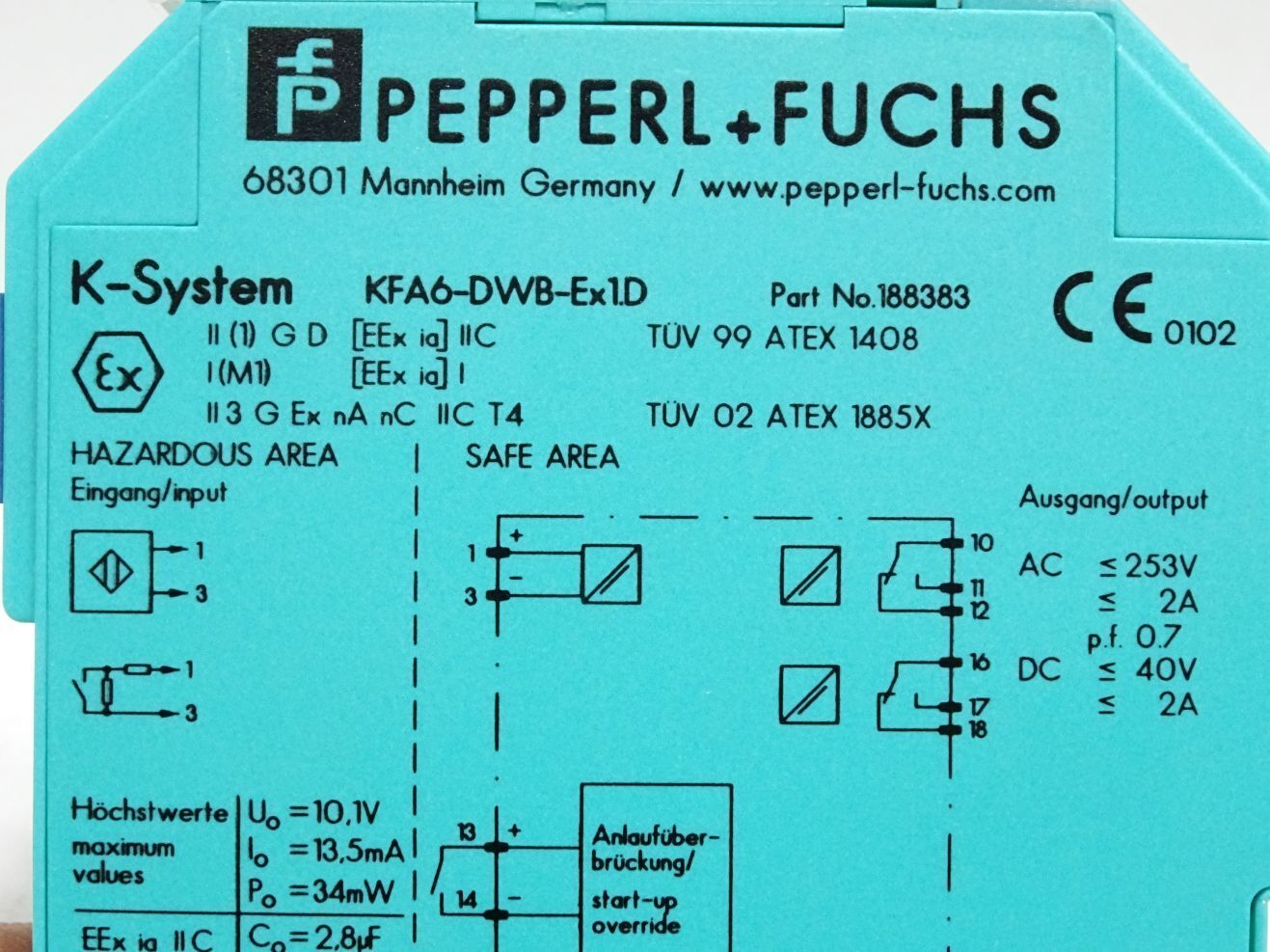 Pepperl+Fuchs Drehzahlwächter 188383 KFA6-DWB-Ex1.D / Neu OVP