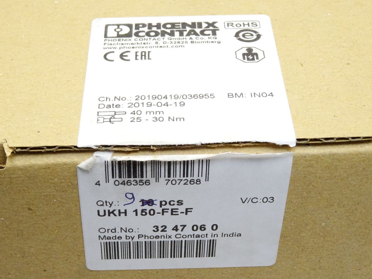 Phoenix Contact Hochstromklemme UKH150-FE-F / 3247060 / Inhalt : 9 Stück / Neu OVP