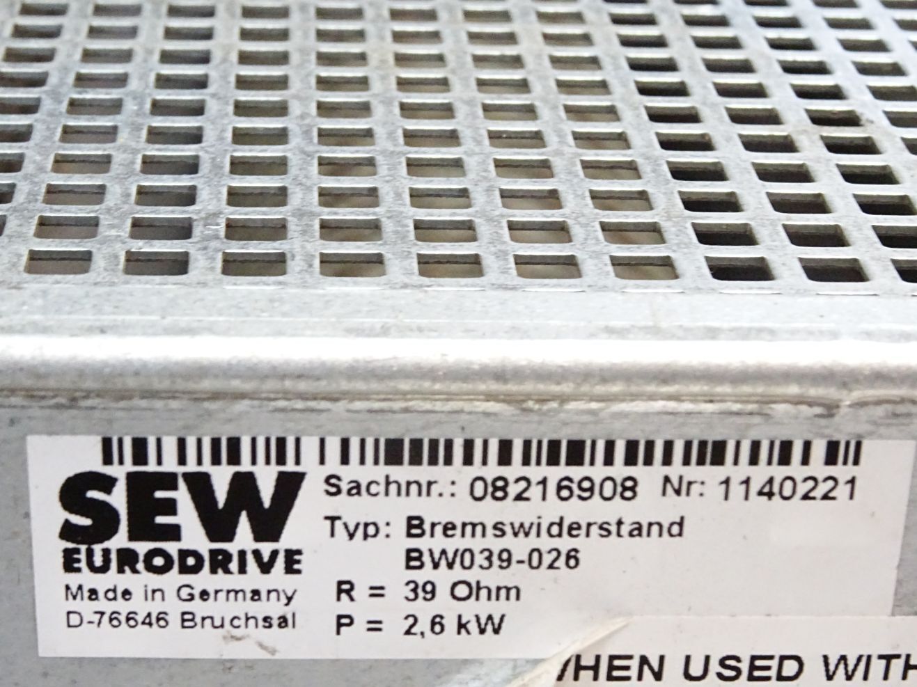SEW Eurodrive 08216908 BW039-026 Bremswiderstand 39Ohm 2.6kW
