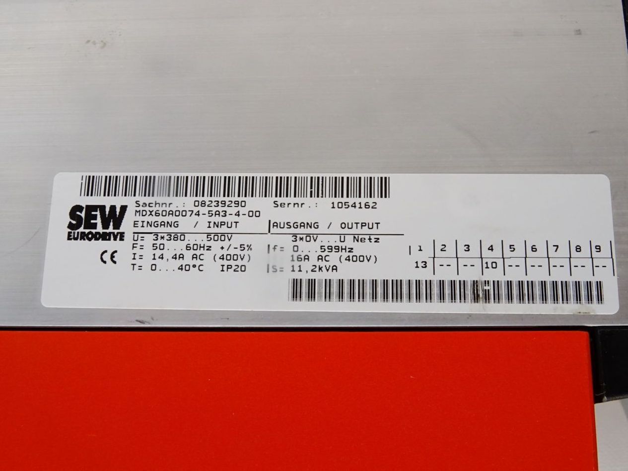 SEW Eurodrive Movitrac Umrichter 7.5kW MC07B0075-5A3-4-00 08285268 MDX60A0074-5A3-4-00 08239290