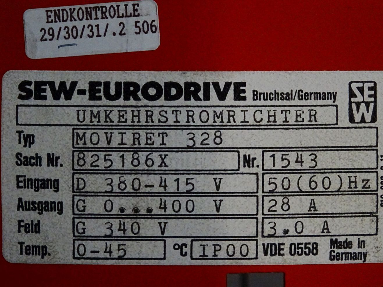 SEW Eurodrive Umkehrstromrichter MOVIRET 328 825186X 0825186X
