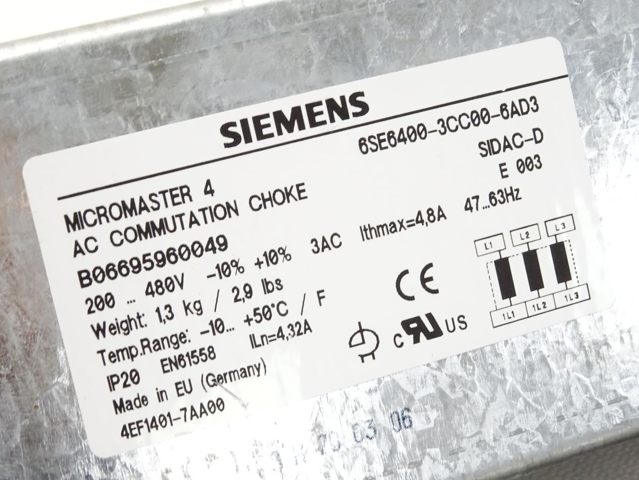 Siemens Micromaster 4 AC Commutation Choke 6SE6400-3CC00-6AD3