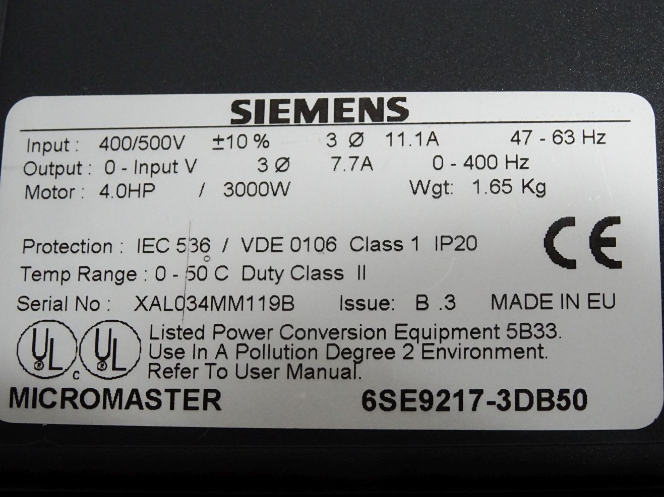 Siemens Micromaster 6SE9217-3DB50 3kW / Unbenutzt