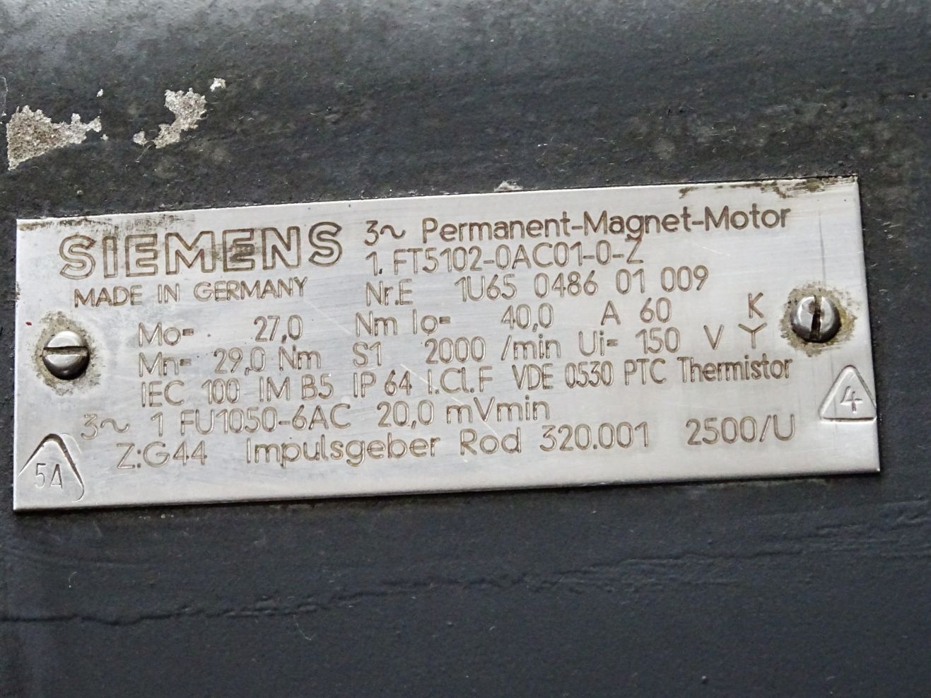 Siemens Servomotor 1FT5102-0AC01-0-Z G44 2000/min 1FU1050-6AC