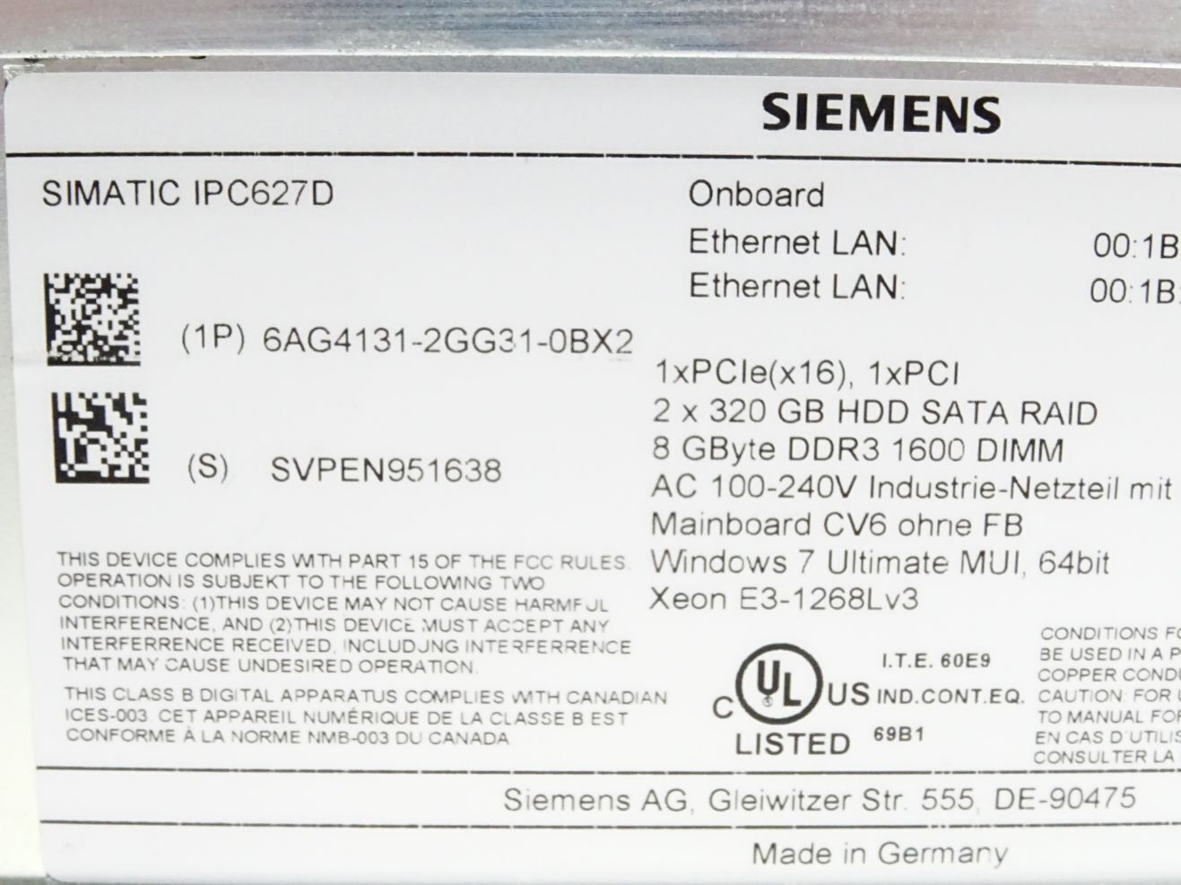 Siemens Simatic IPC627D 6AG4131-2GG31-0BX2