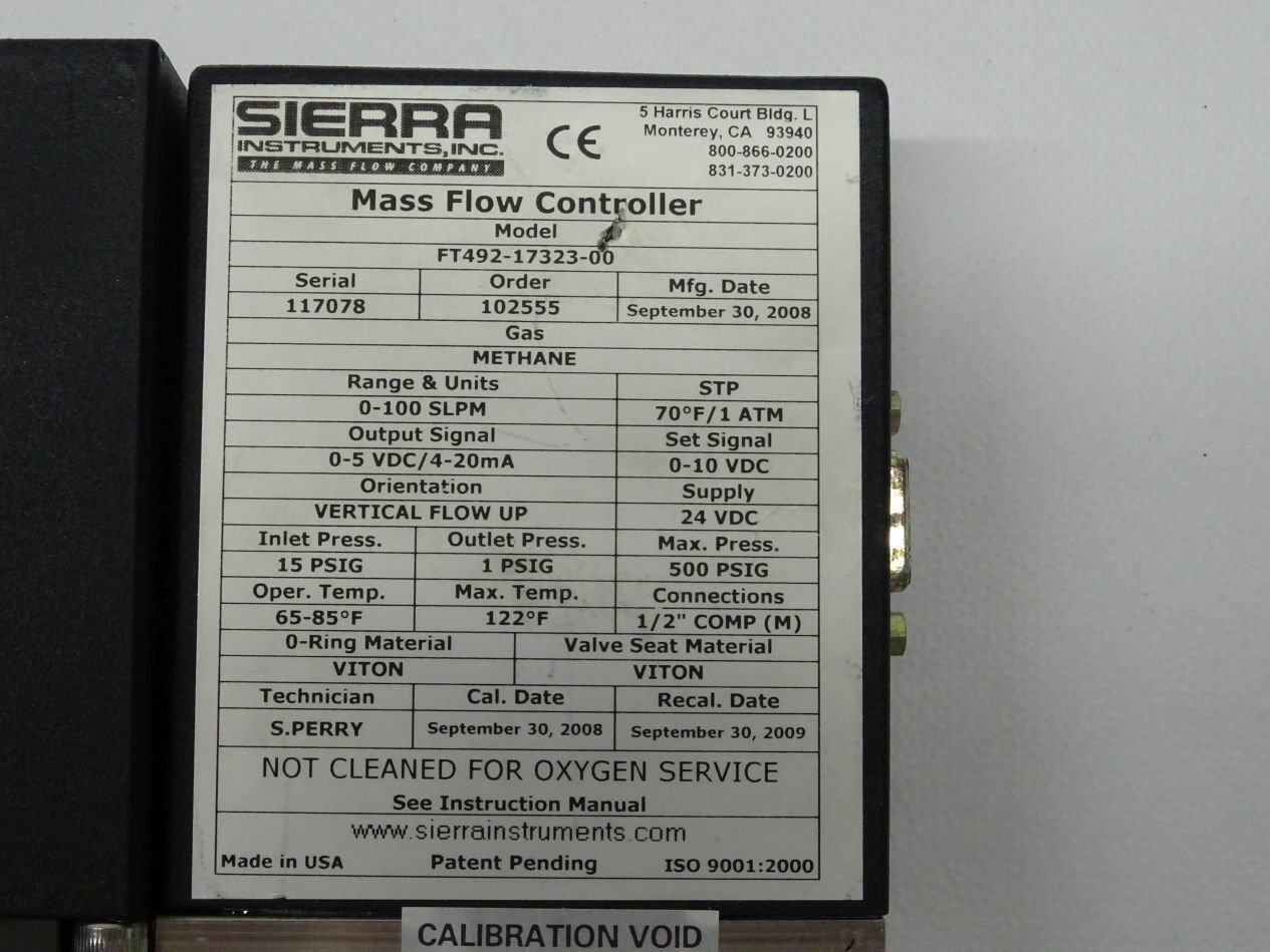 Sierra Instruments Mass Flow Controller FT492-17323-00 / 102555