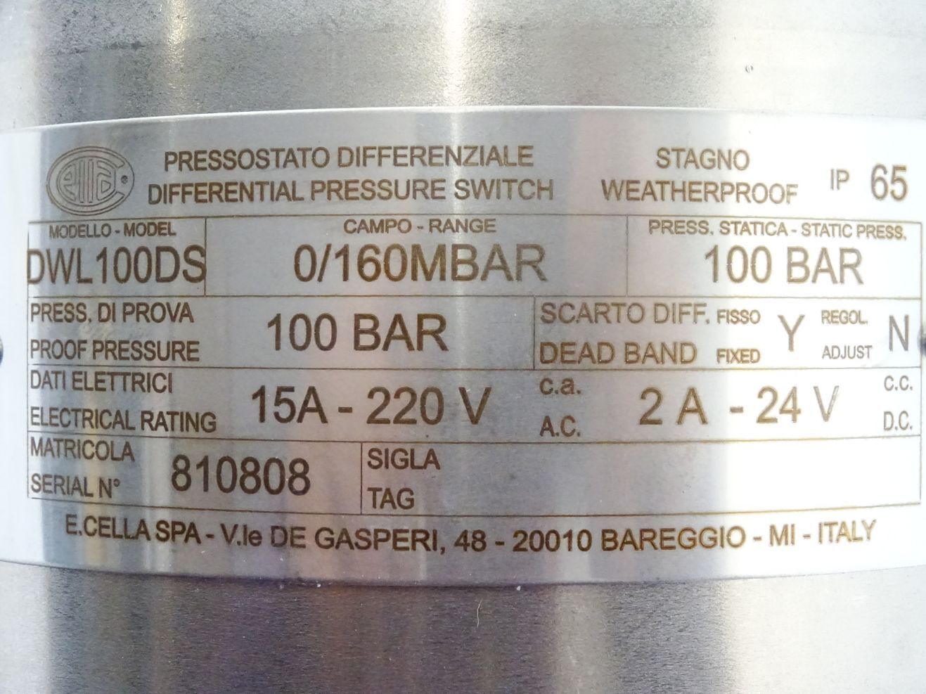 Wika Ettore Cella DWL100DS Differenzdruckschalter 0/160mbar / Neu