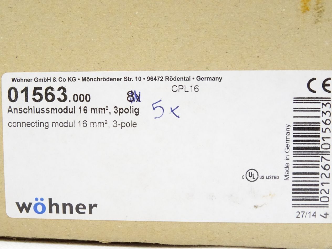 Wöhner 01563.000 Anschlussmodul 16mm2, 3-polig / Inhalt : 5 Stück / Neu OVP