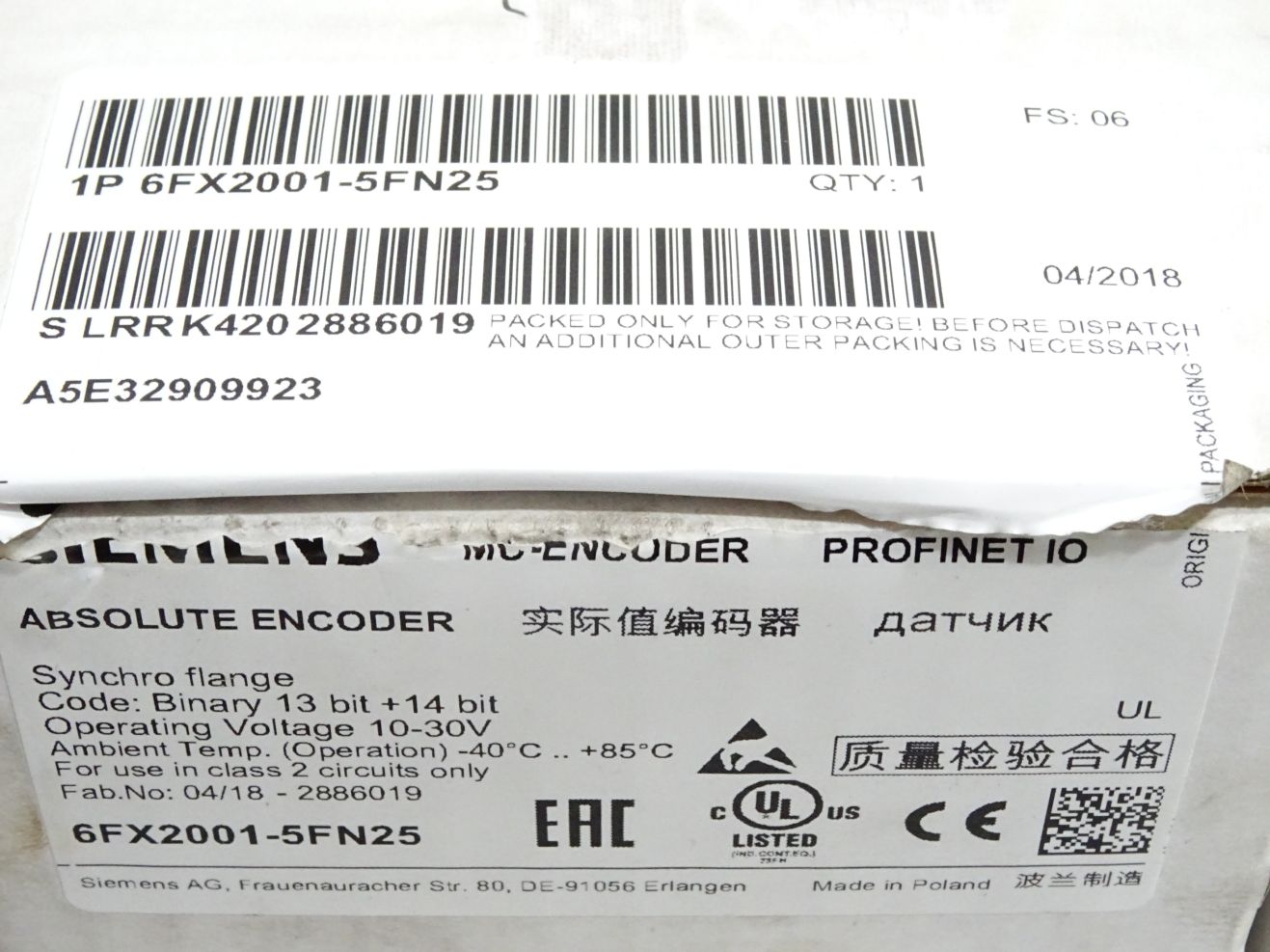 Siemens Absolute Encoder 6FX2001-5FN25 / Neu OVP