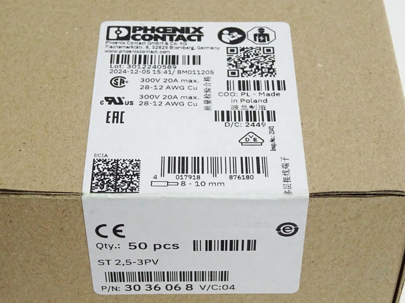 Phoenix Contact 3036068 Inhalt:50 Mehrstockklemme ST 2,5-3PV Neu OVP versiegelt