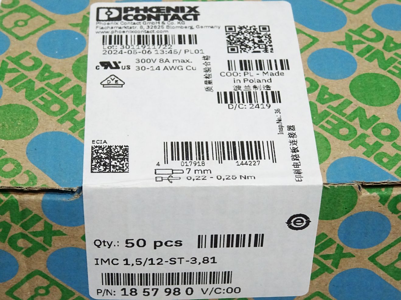 Phoenix Contact 1857980 IMC 1,5/12-ST-3,81 Inhalt:50 Stück / Neu OVP versiegelt