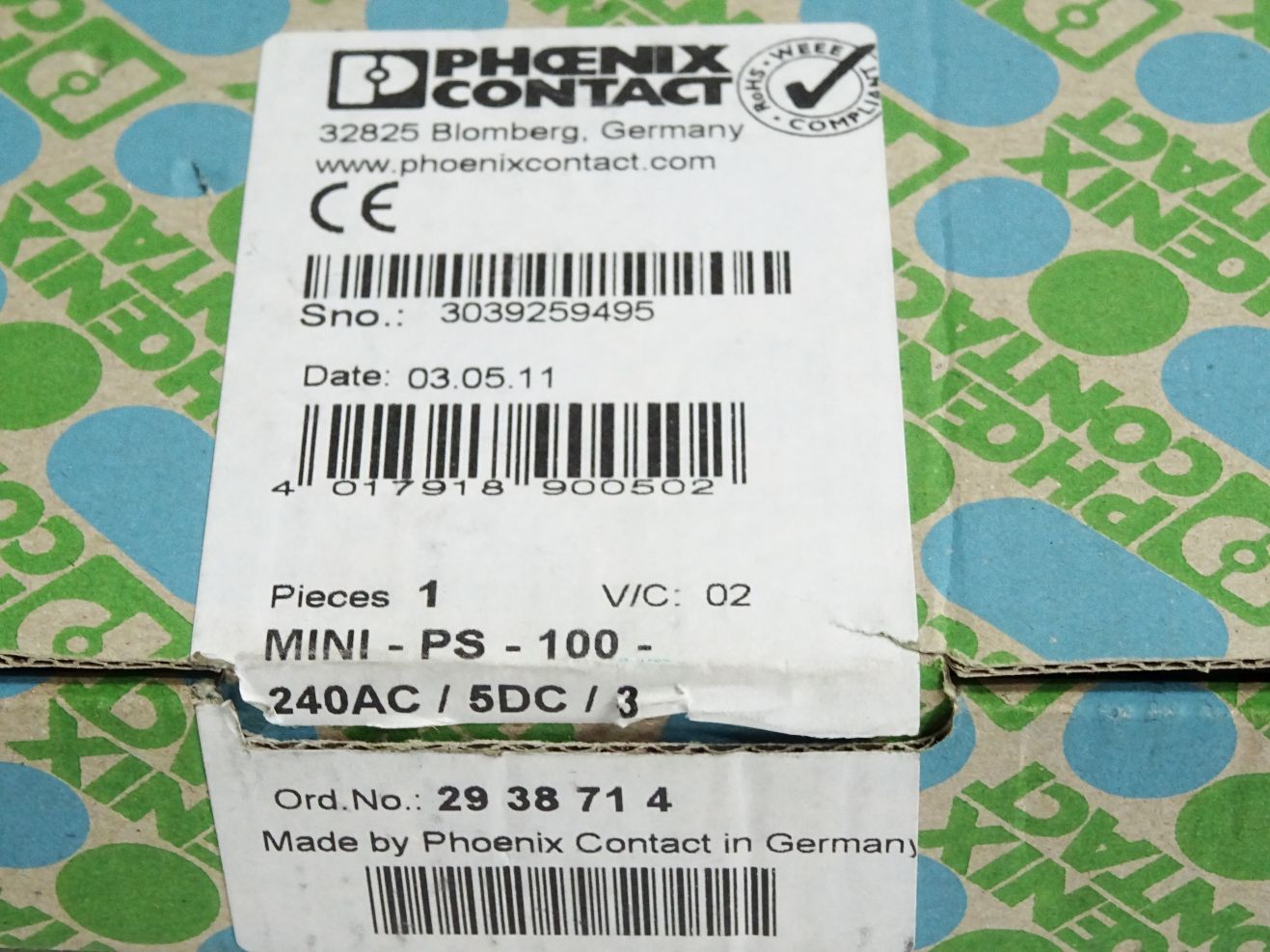 Phoenix Contact 2938714 MINI-PS-100-240AC/ 5DC/3 Stromversorgung / Neu OVP