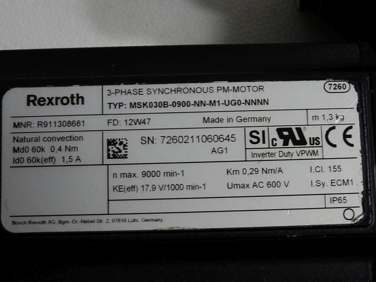 Rexroth Servomotor R911308681 MSK030B-0900-NN-M1-UG0-NNNN 9000min-1