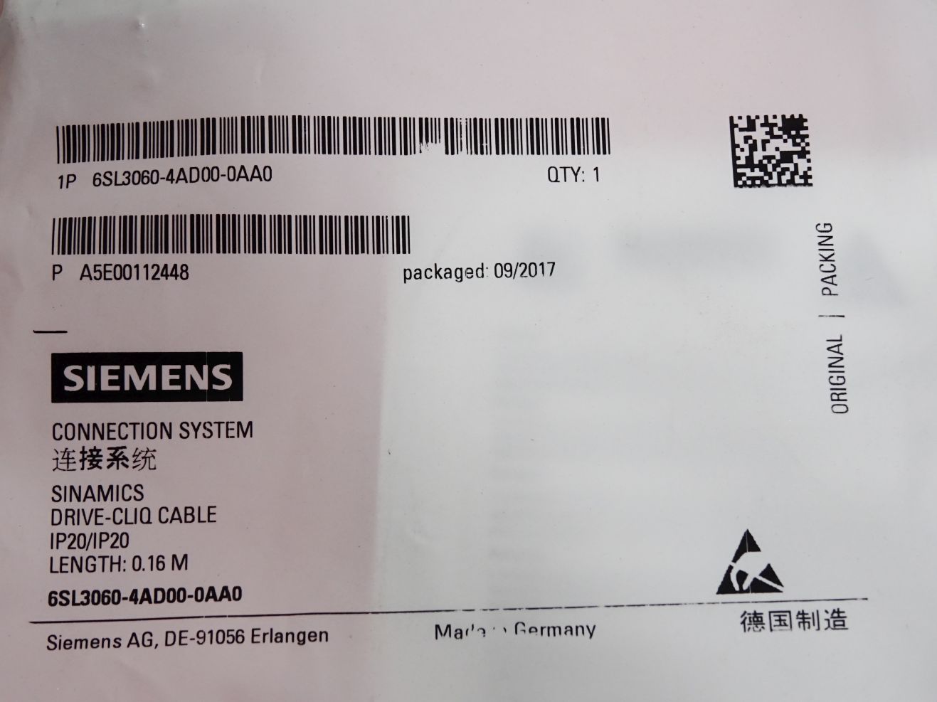Siemens Sinamics Drive-Cliq Kabel 0.16m 6SL3060-4AD00-0AA0 / Neu OVP