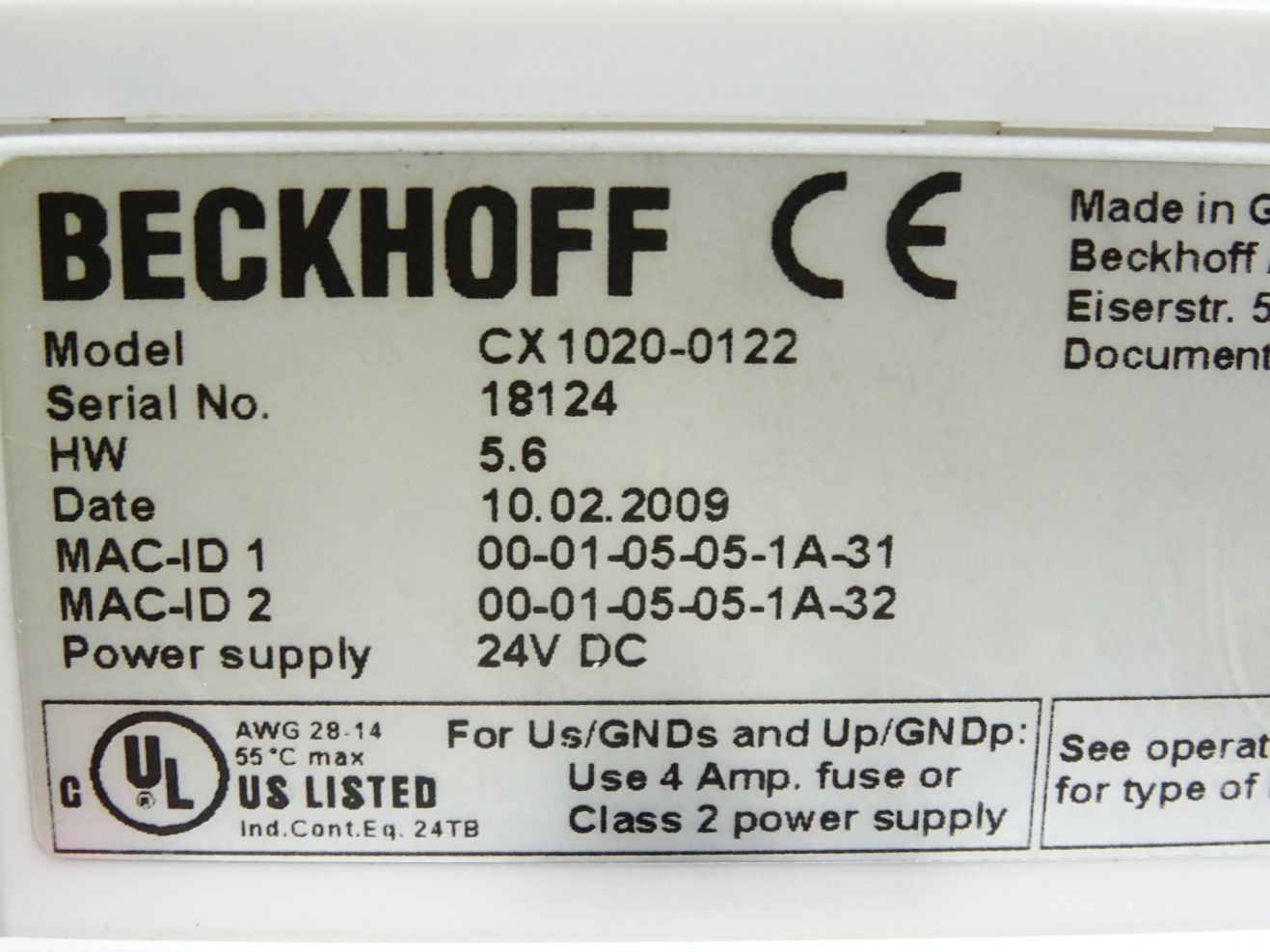 Beckhoff CX1020-0122 CPU-Grundmodul -N010 -N000 -0122