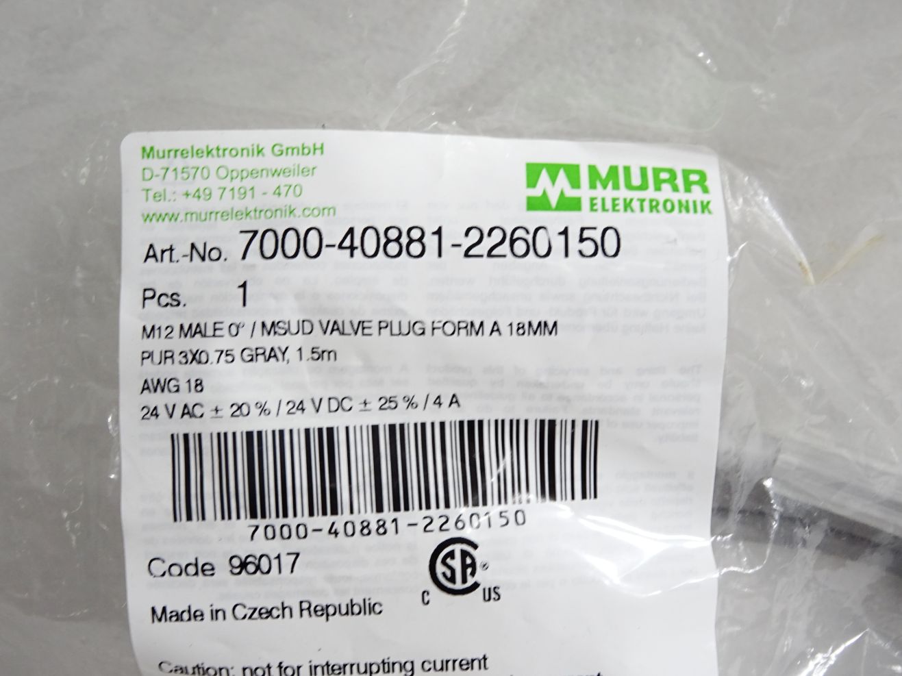 Murr Elektronik Kabel 7000-40881-2260150 / Neu OVP