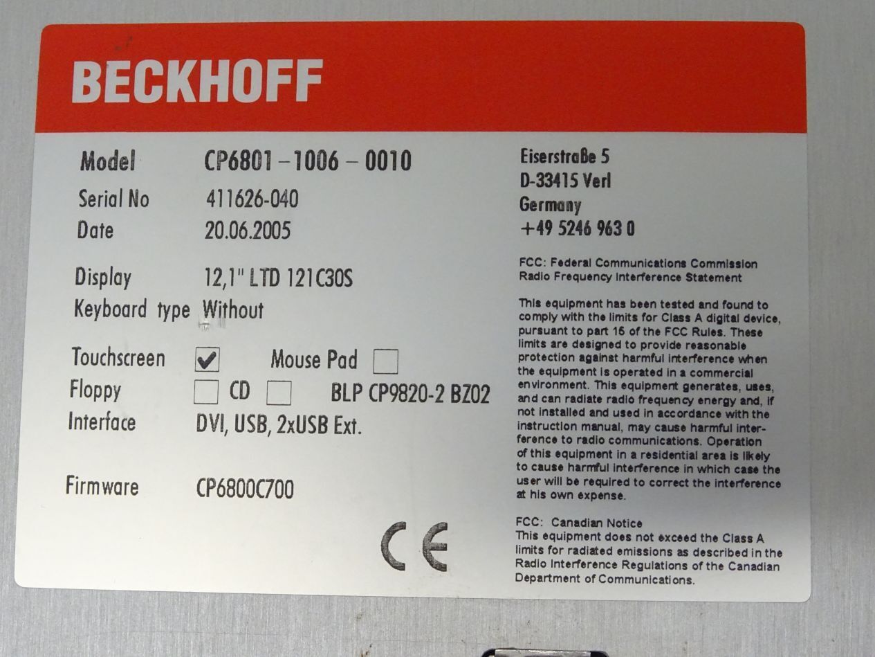 BECKHOFF CP 6801 1006 0010 Touchpanel CP6801-1006-0010