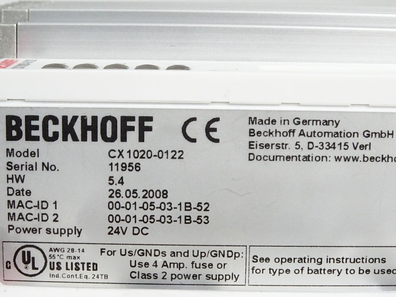 Beckhoff CPU-Grundmodul CX1020-0122 CX1020-N040 CX1020-N030 CX1020-N010 CX1020-N000