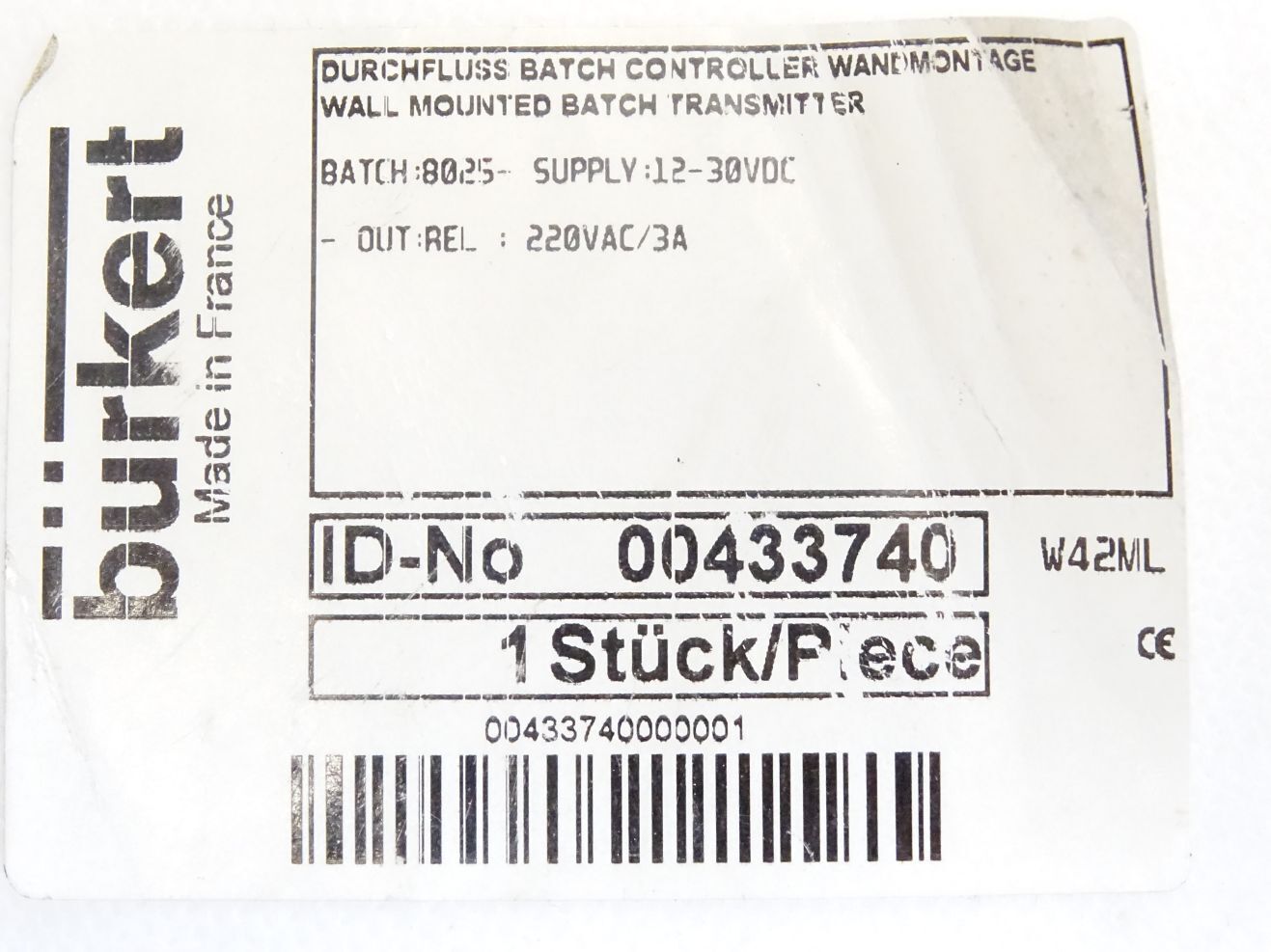 Bürkert Durchfluss batch controller Wandmontage 8025 12-30VDC / 00433740 / Neu