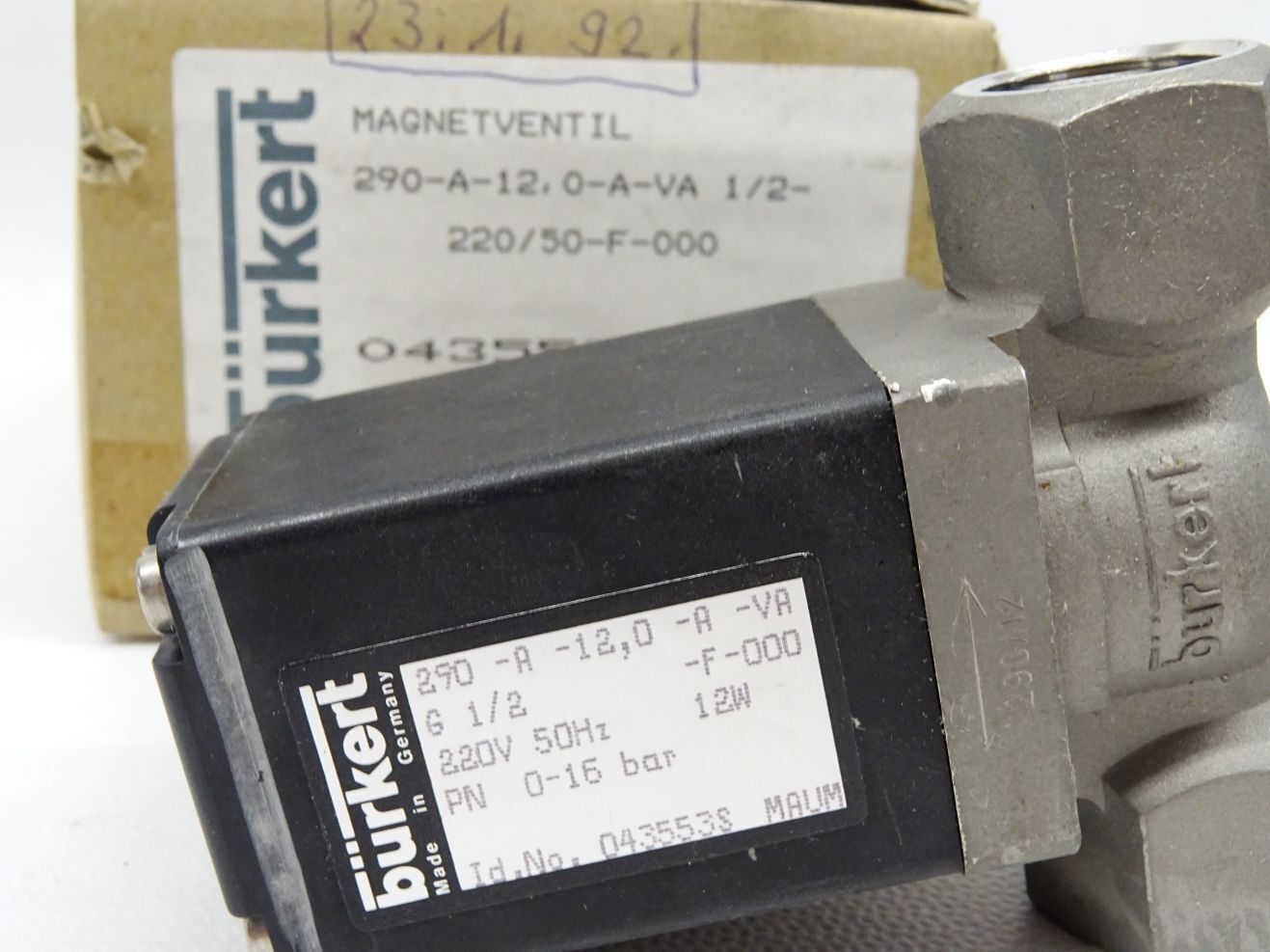 Bürkert Magnetventil 043553S 290-A-12,0-A-VA 1/2-220/50-F-000 / Neu OVP