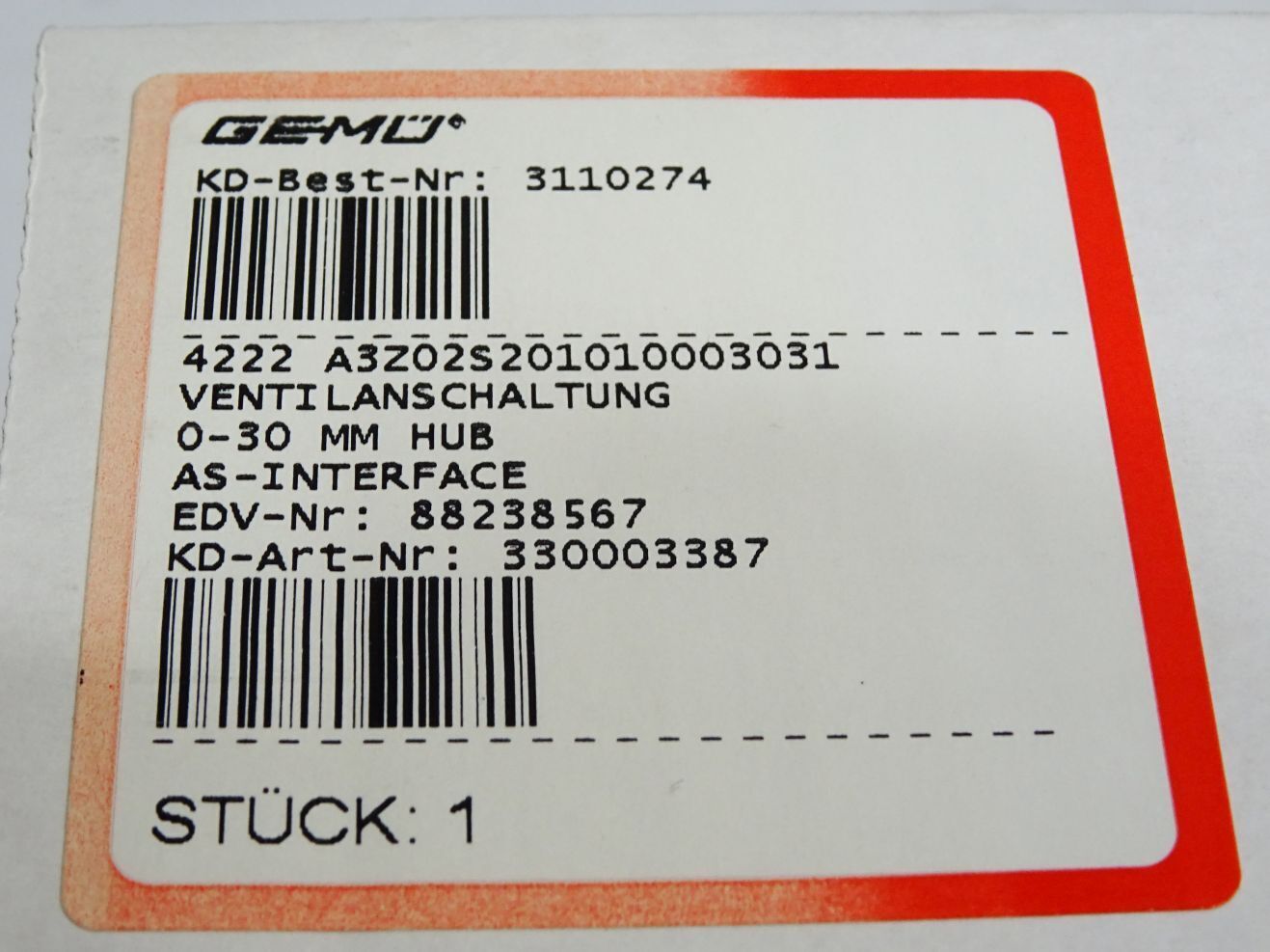 Gemü Ventilanschaltung 4222 88238567-6377636 A3z02s201010003031 / Neu OVP