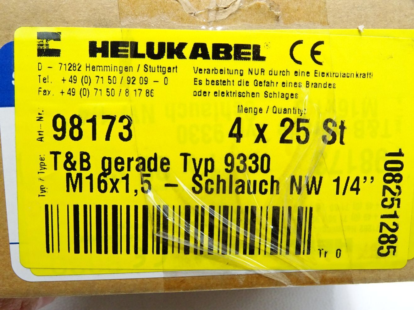 Helukabel 98173 T&B gerade Typ 9330 M16x1.5 Schlauch NW 1/4" / Inhalt:15 Stück / Neu OVP