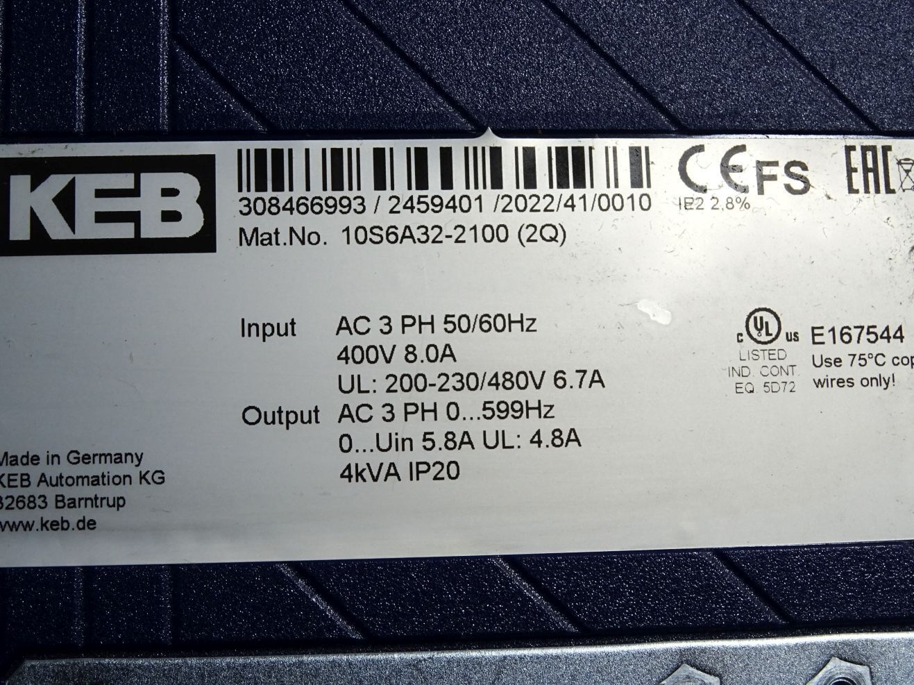 KEB 10S6A32-2100 Servo Drive 2.2kW COMBIVERT S6 / Neu OVP