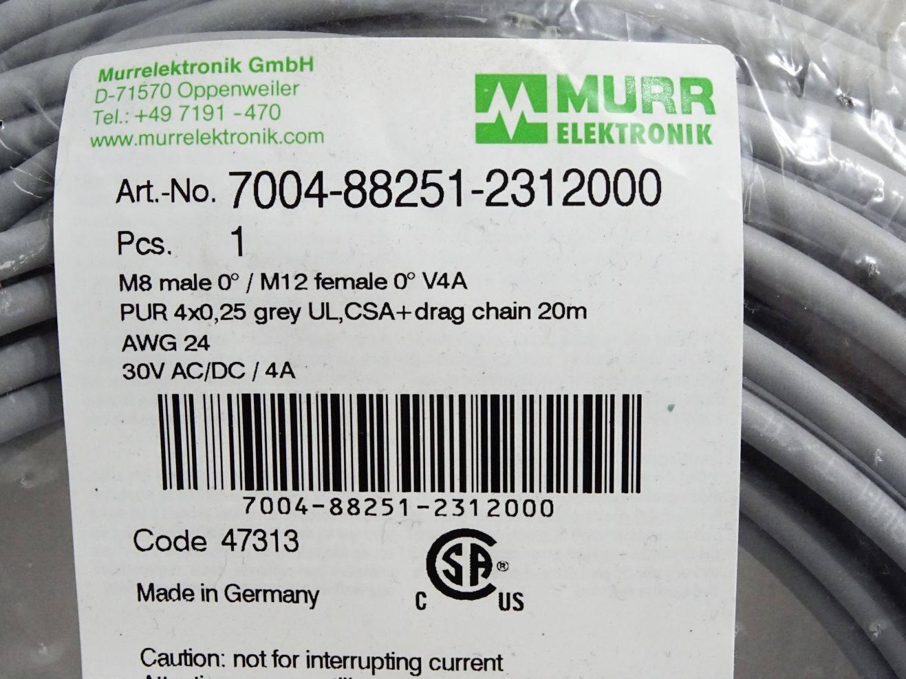 Murr Elektronik Kabel 7004-88251-2312000 / Neu OVP