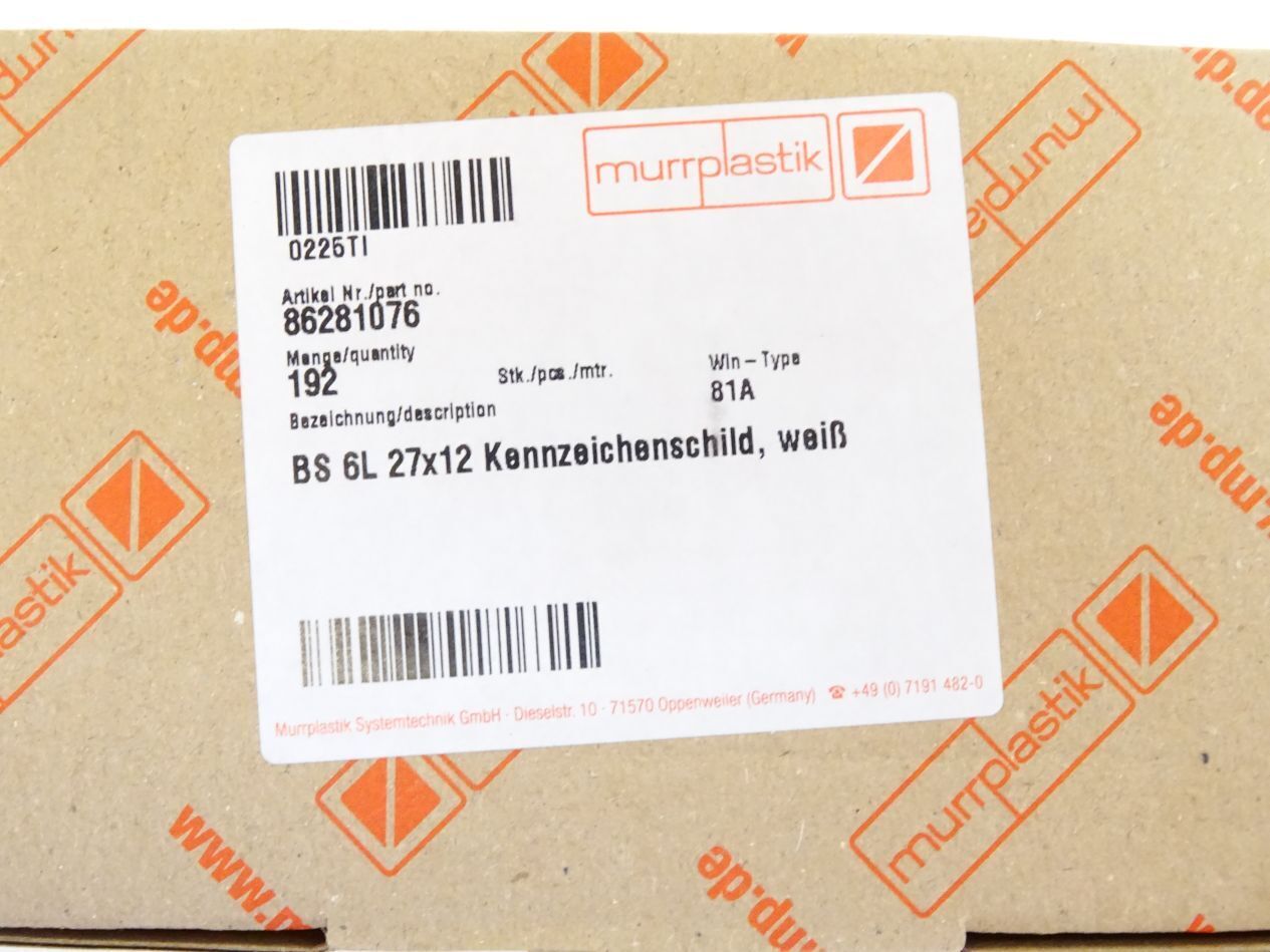 Murrplastik 86281076 BS6L27x12 Kennzeichenschild / Inhalt : 192 Stück / Neu OVP