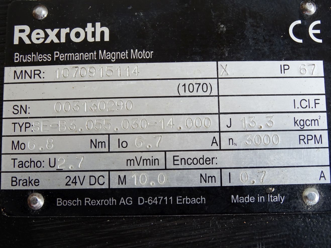 Rexroth Brushless Permanent Magnet Motor Servomotor 1070915114 SE-B3.055.030-14.000 3000RPM