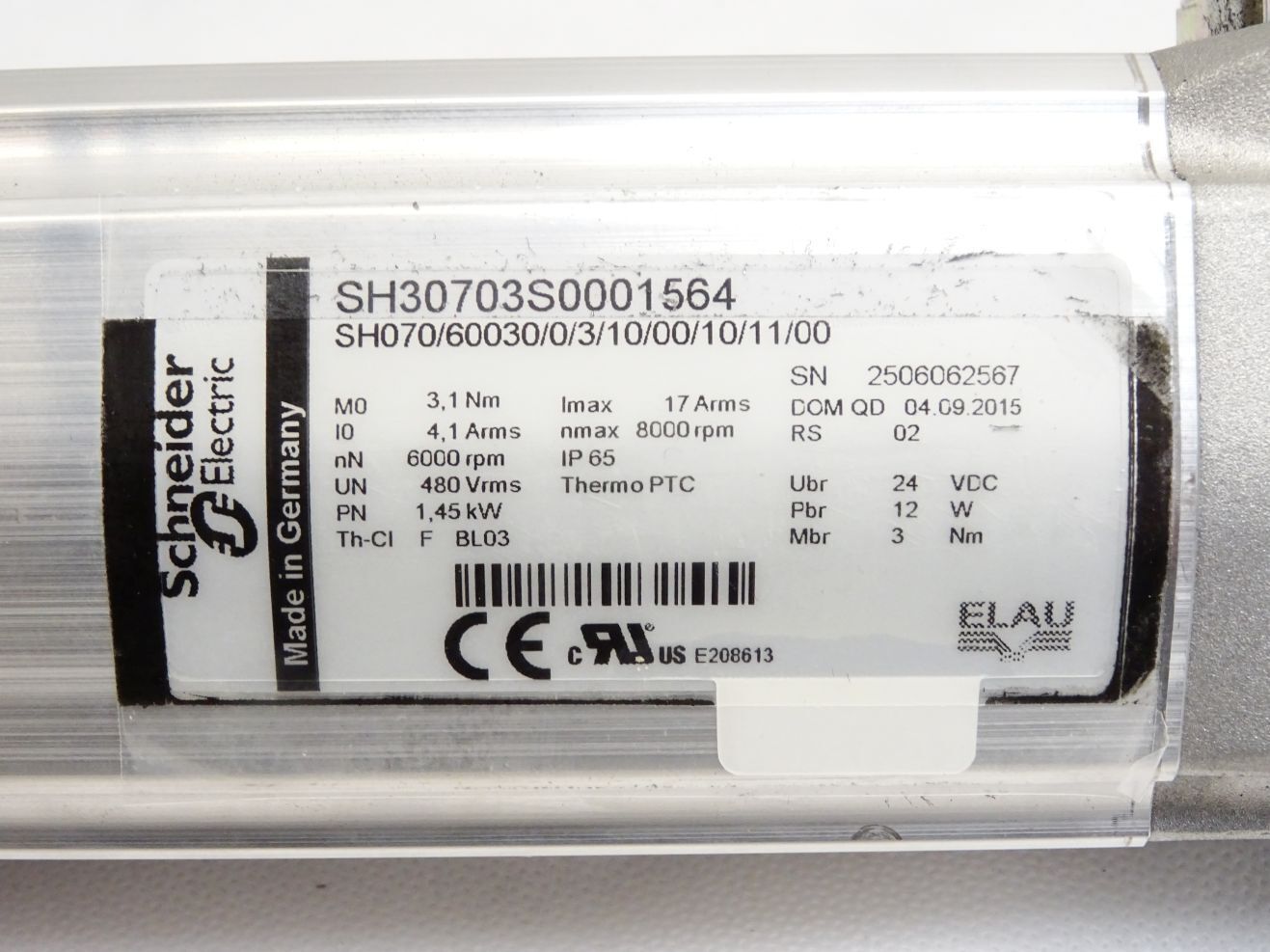 Schneider Electric Servomotor SH30703S0001564 SH070/60030/0/3/10/00/10/11/00 6000-8000rpm 1.45kW SH3 070