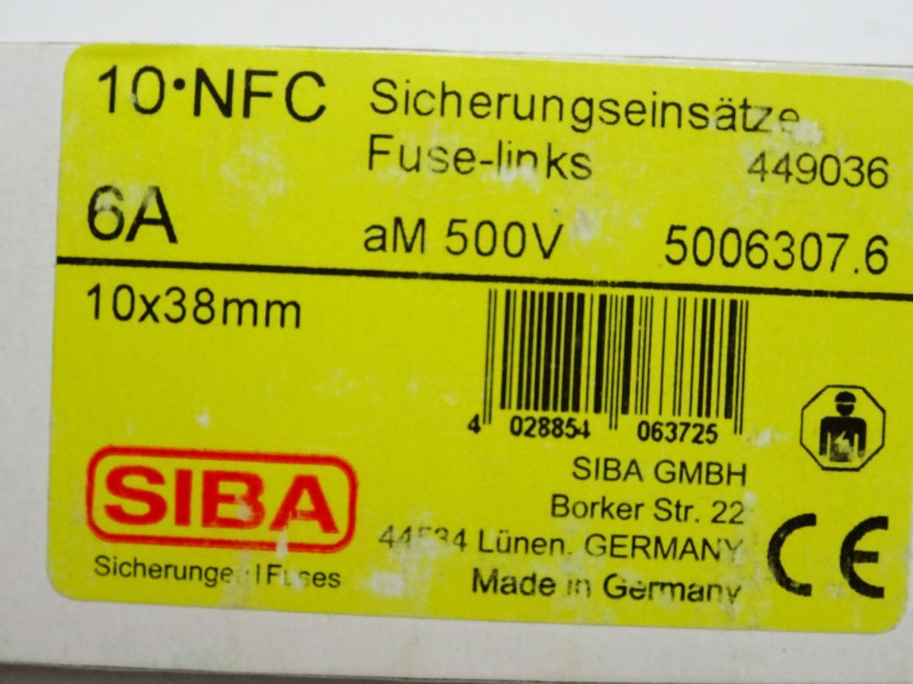 SIBA Sicherungen 5006307.6 / Inhalt : 10 Stück / NFC Fuse Link 6A gG 500V / Neu OVP