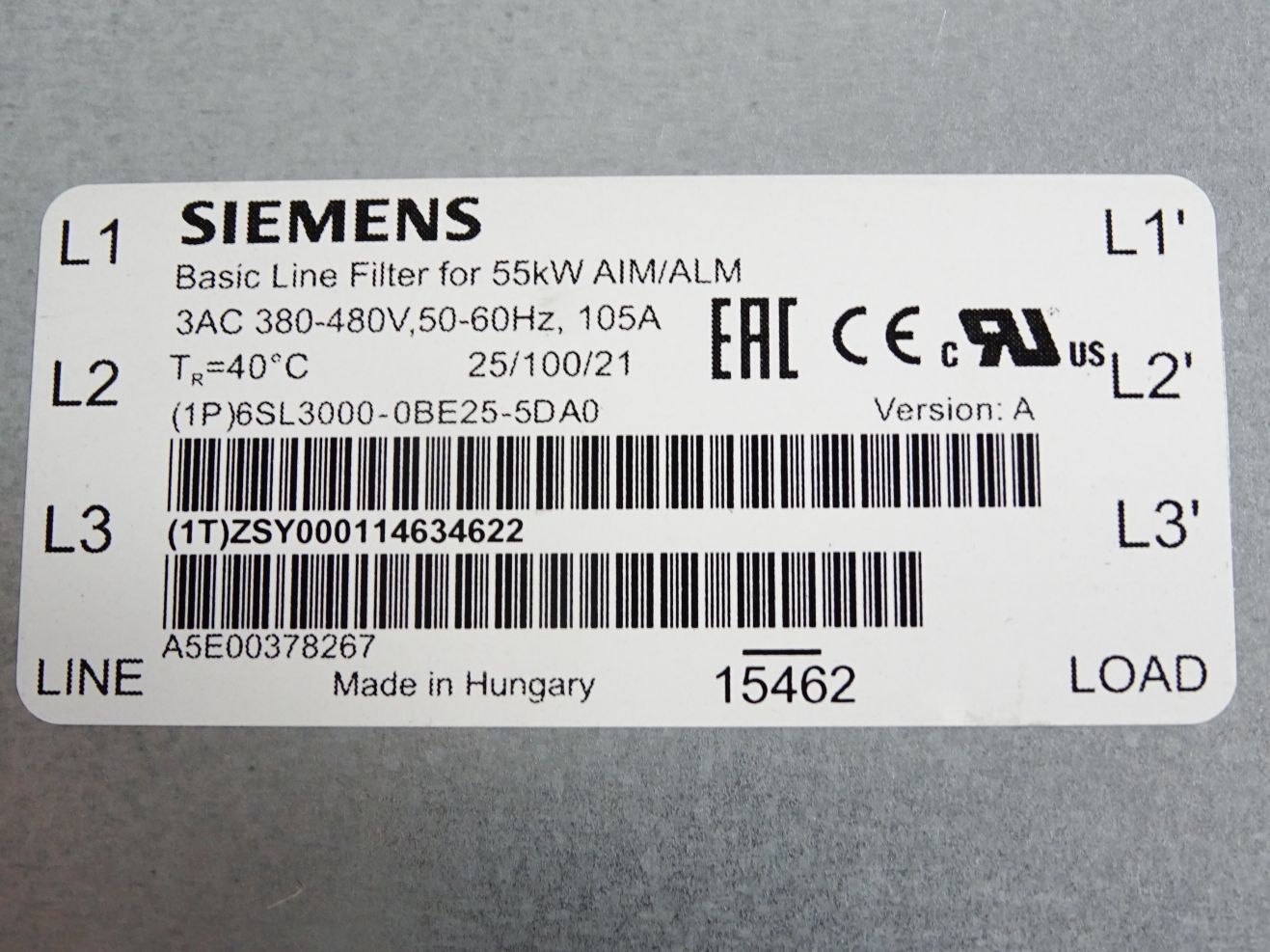 Siemens Basic Line Filter for 55kW AIM/ALM 6SL3000-0BE25-5DA0