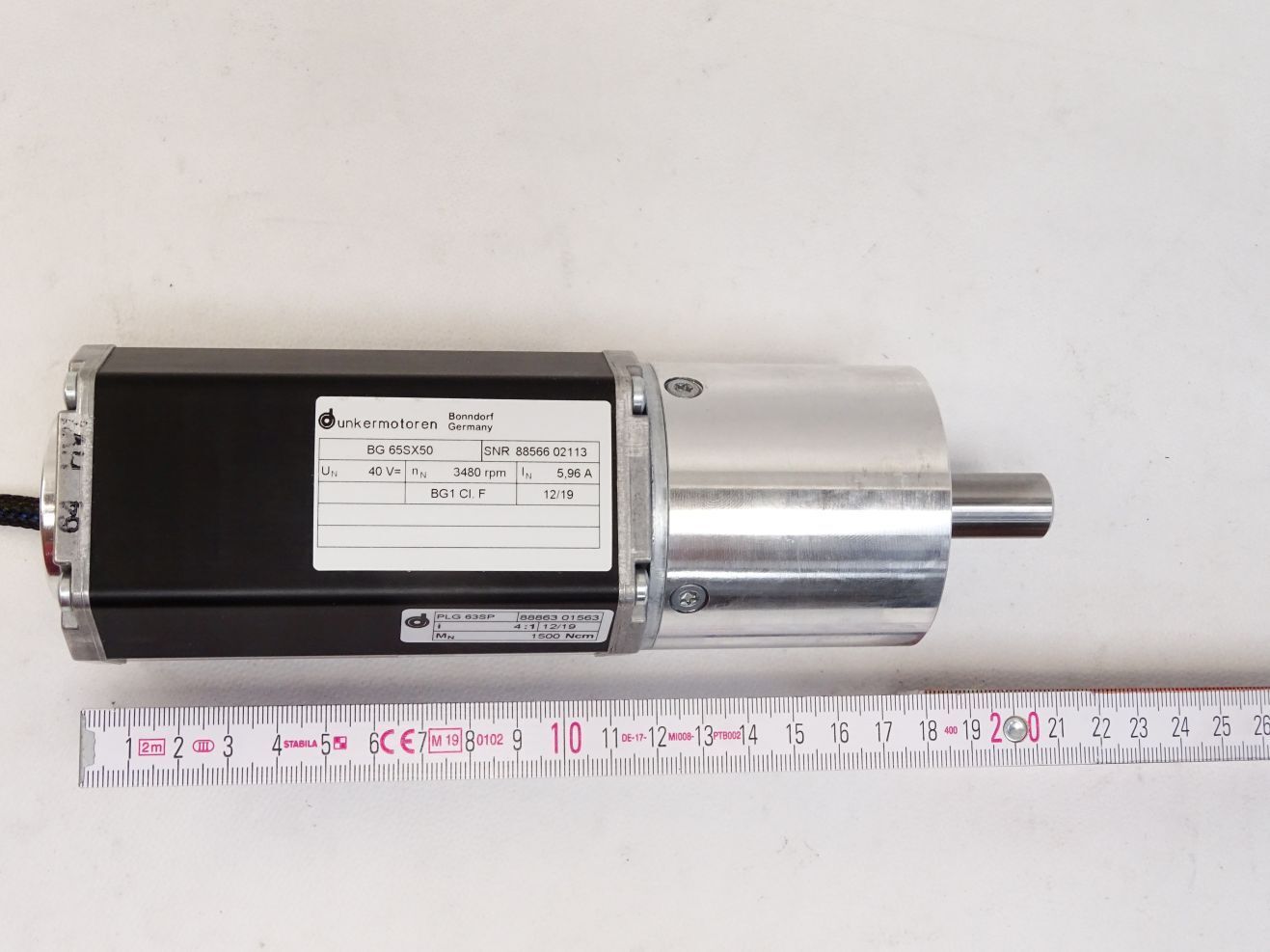 Siemens Dunkermotoren Bürstenloser Servomotor BG65SX50 / 3480 r/min 40V Getriebe PLG63 / Neu