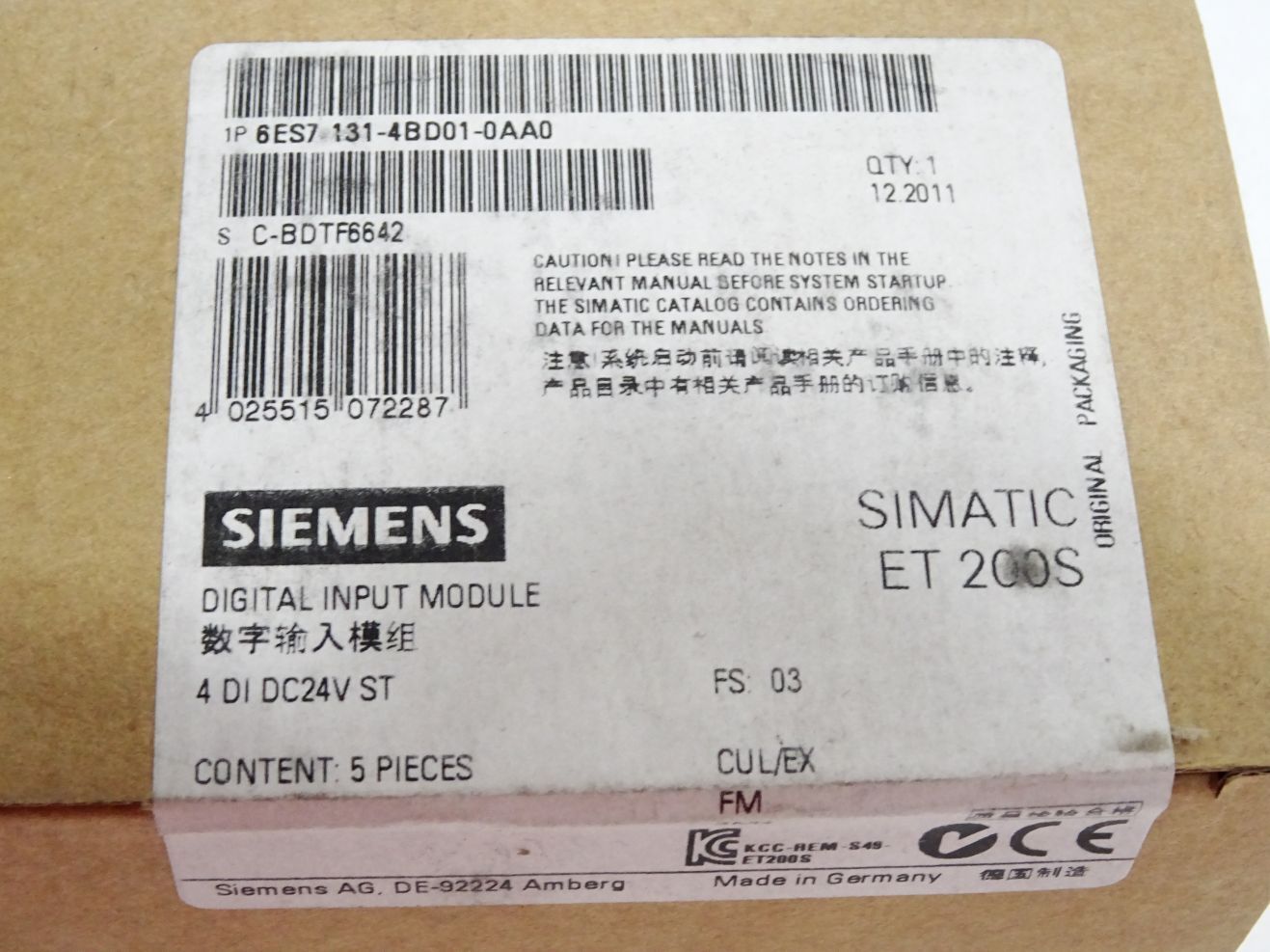 Siemens ET200S 6ES7131-4BD01-0AA0 6ES7 131-4BD01-0AA0 Inhalt:5 Stück / Neu OVP versiegelt